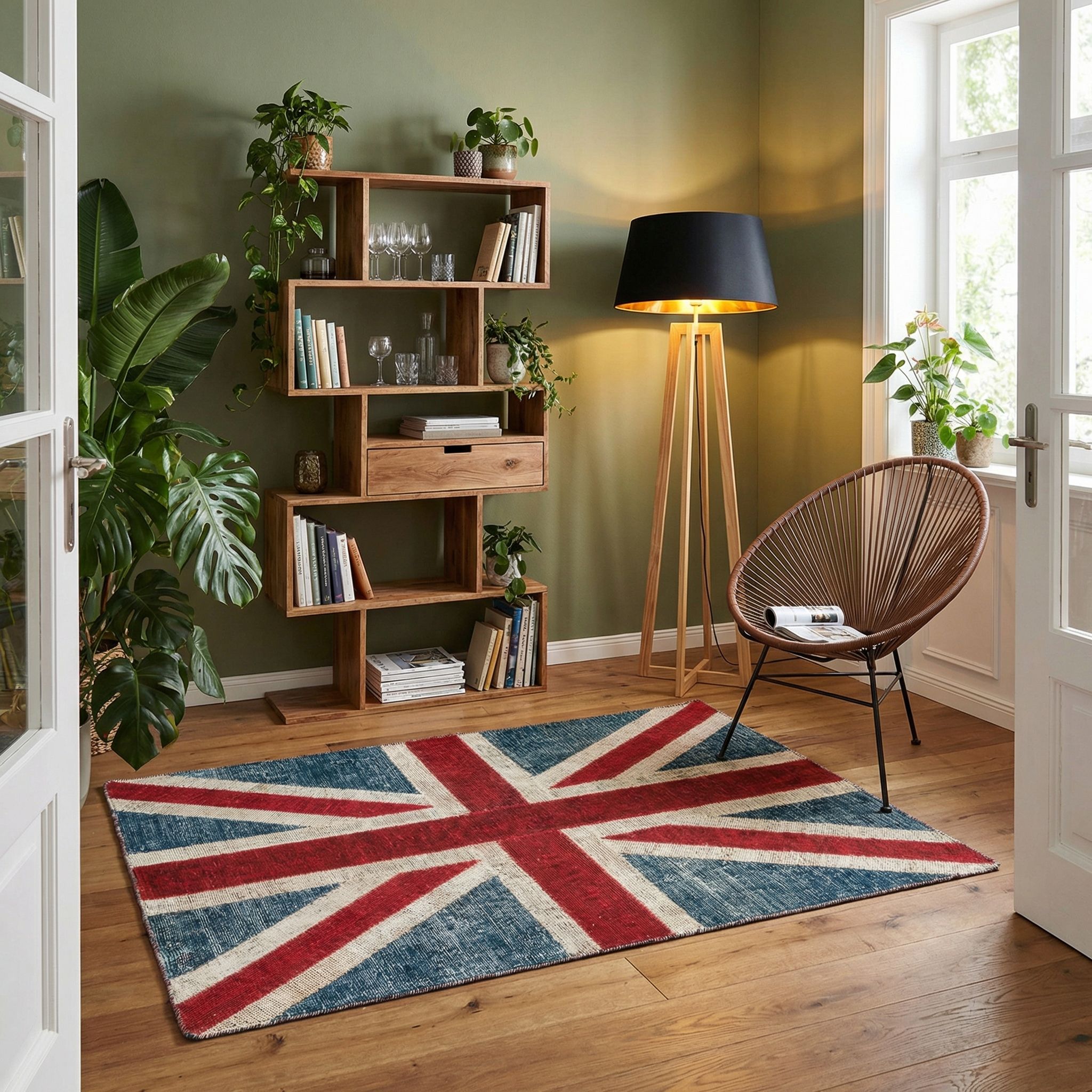 Als bewusster Stilbruch im cleanen Scandinavian-Style fungiert dieser Teppich als kraftvoller Farbtupfer, der die nordische Zurückhaltung mit einer Prise britischer Exzentrik belebt. In einem Umfeld aus hellem Holz und weißen Wänden kommt das grafische Union-Jack-Motiv besonders gut zur Geltung und bricht die Strenge des Minimalismus auf eine sehr moderne Weise auf. Die hochwertige Verarbeitung und die natürlichen Materialien wie die Baumwollrückseite entsprechen dem hohen skandinavischen Anspruch an Qualität und Nachhaltigkeit. Mit diesem Design-Statement beweisen Sie, dass nordisches Wohnen nicht nur ruhig und neutral, sondern auch lebendig, farbenfroh und charakterstark sein kann.