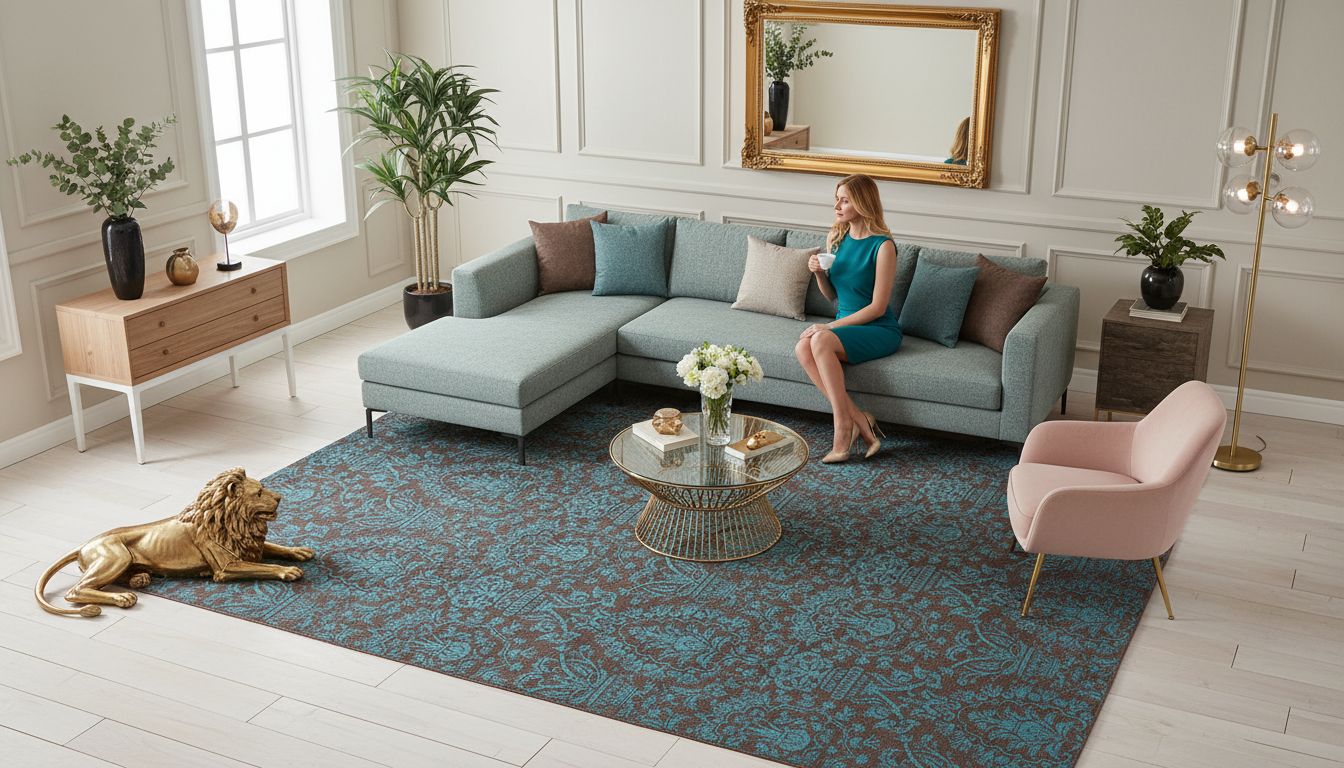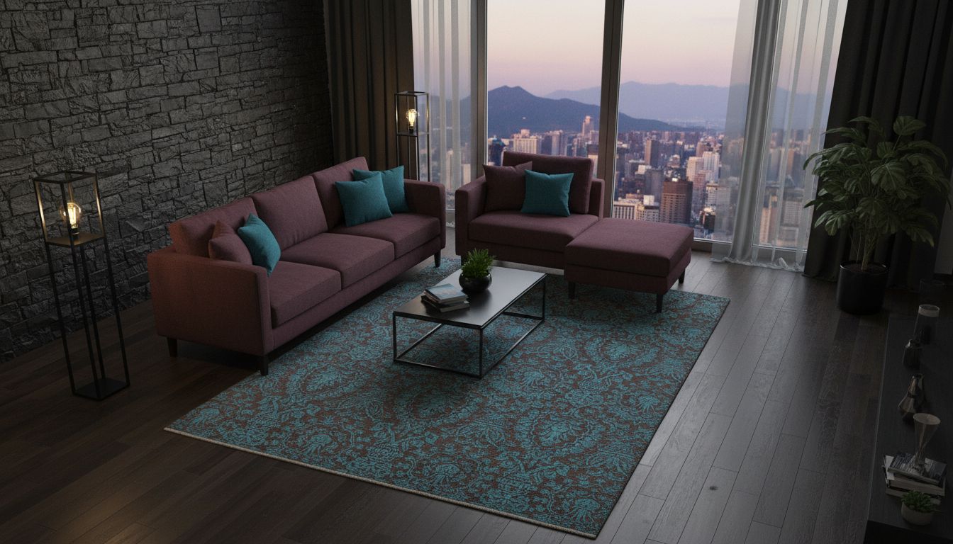 Dieser exklusive handgeknüpfte Teppich aus der Kollektion "Eterno" präsentiert sich in einer eleganten Farbkombination. Die Hauptfarbe ist ein tiefes Braun, das als Grundton dient und dem Teppich eine warme Ausstrahlung verleiht. Dazu kontrastieren lebendige Türkistöne, die in kunstvollen Mustern über den Teppich verteilt sind und ein faszinierendes Spiel aus Licht und Schatten schaffen. Die dritte Farbe ist ein dezenter Grauton, der die Komposition harmonisch abrundet. Die Musterung ist ...mehr Beschreibung