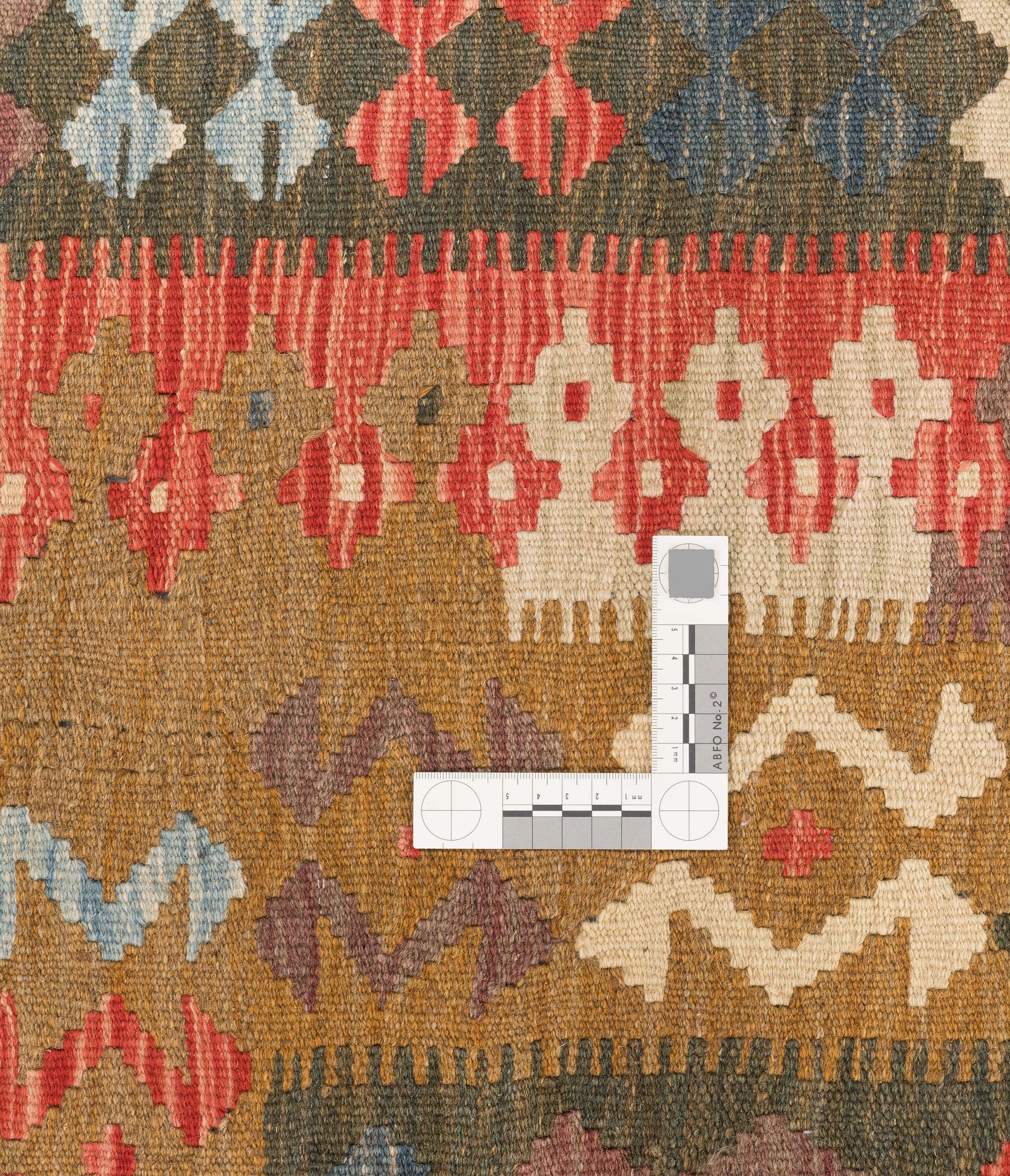 Dieser Kelim ist aus handversponnener Schafwolle gefertigt und mit Naturfarben gefärbt, was ihm eine natürliche und unverwechselbare Struktur verleiht. Dank der Schlitzkelim-Technik ist er beidseitig verwendbar und ideal für moderne Wohnambiente. Seine robuste Qualität macht ihn perfekt für den täglichen Gebrauch. Um den Teppich auf glatten Böden sicher zu platzieren, empfehlen wir eine rutschfeste Teppichunterlage. Entdecken Sie die zeitlose Schönheit und Qualität dieses Meisterwerks und bringen Sie ein Stück afghanischer Tradition in Ihr Zuhause.