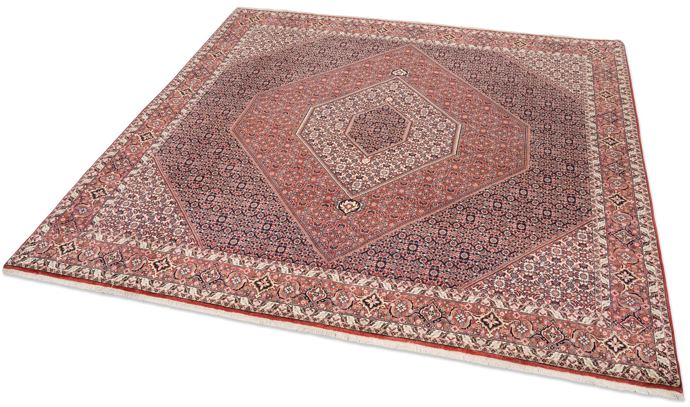 Bidjar: Die Stadt Bidjar liegt in nordwestlichen Iran, in Kordestan. Die Stadt ist auf 1920 Meter Höhe und wird auch das Dach des Irans genannt. Die Mehrheit der Bevölkerung sind Kurden. Der Bidjar gehört zu den solidesten und hochwertigsten Orientteppichen.Man unterscheidete früher im Handel oft zwischen Bidjars aus Bidjar (von Kurden geknüpft) und solchen aus Tekap (von Afsharen geknüpft). Die beiden Hauptproduktionsgebiete befinden sich in der Provinz Kermanshah. Beiden Gruppen ...