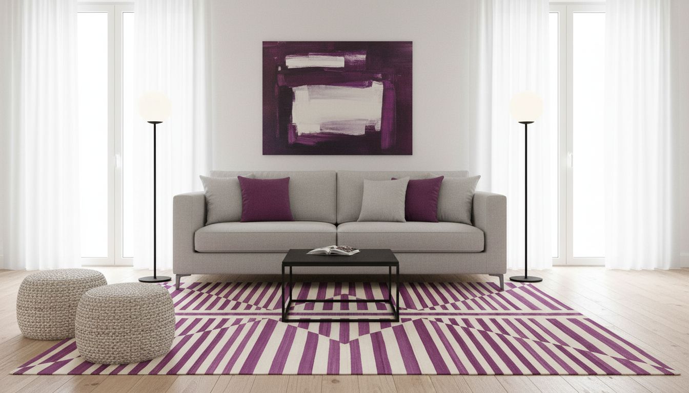 Dieser handgewebte Kelim aus Afghanistan mit dem Namen Tavis strahlt in einer harmonischen Kombination aus sanftem Cremeweiß und einem mittleren Lila. Die Hauptfarbe, ein warmes Cremeweiß, bildet die Grundlage für das auffällige geometrische Muster, das in einem eleganten Violett gehalten ist. Diese zwei Farben schaffen ein modernes, doch zeitloses Design, das an die Werke von Piet Mondrian oder das Bauhaus der 1920er Jahre erinnert. Die Musterung zeichnet sich durch klare, symmetrische ...mehr Beschreibung