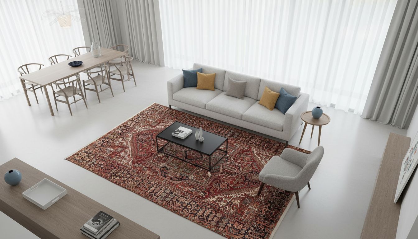 Hier präsentieren wir Ihnen einen authentischen Heriz-Teppich aus Persien, der durch seine besondere Farbgebung und Musterung besticht. Die Hauptfarbe dieses handgeknüpften Meisterwerks ist ein kräftiges Rot, das durch Akzente in Blau, Creme und Braun ergänzt wird. Das geometrische Design, charakteristisch für Heriz-Teppiche, zeigt ein zentrales Medaillon, umgeben von komplexen, symmetrischen Mustern und floralen Elementen.Die Farben erzeugen ein lebendiges, aber dennoch harmonisches ...