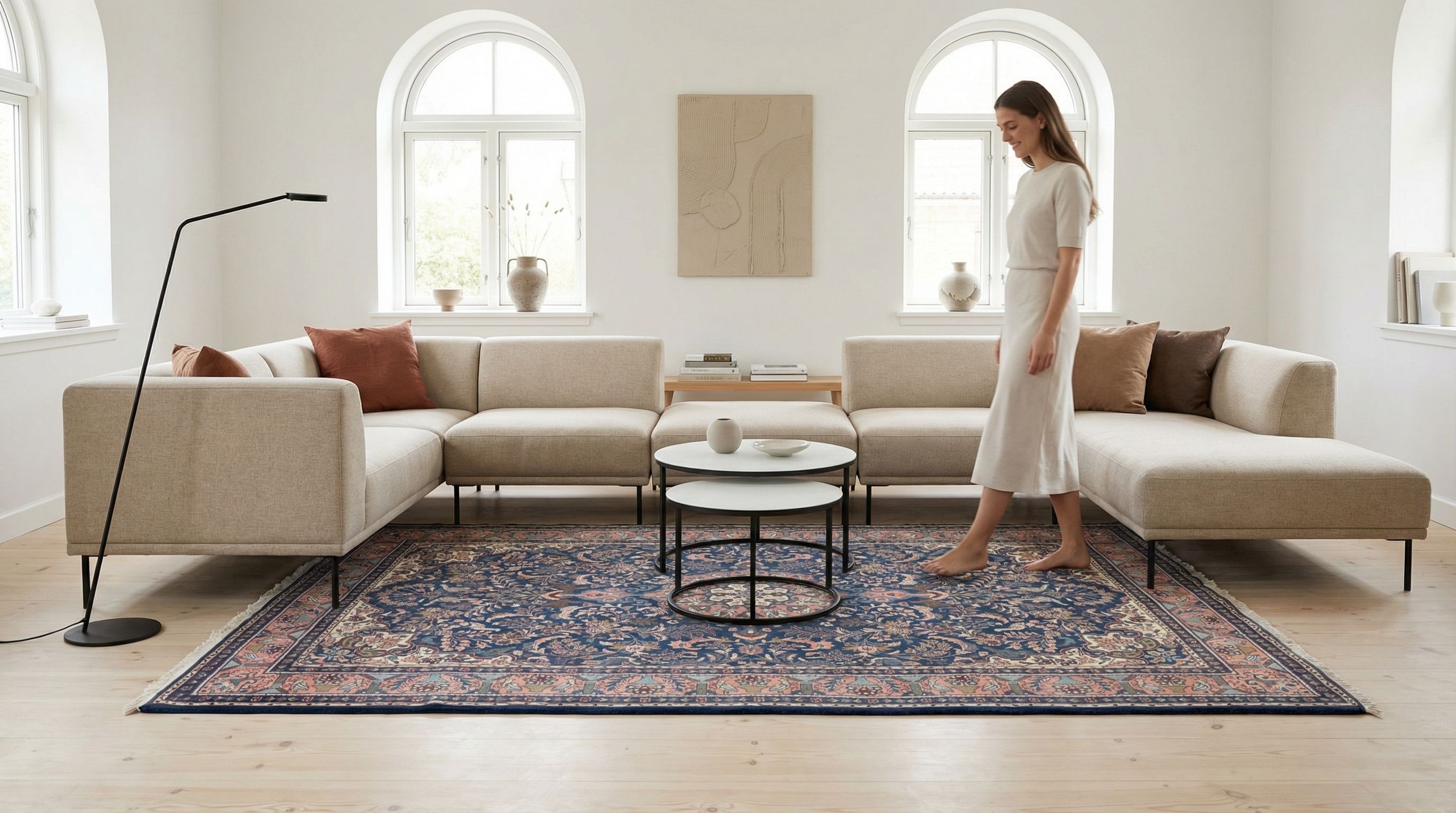 Unsere handgeknüpften Teppiche sind reine Handarbeit aus erlesenen Naturmaterialien. Echte Knoten sowie Schuss- und Kettfäden verleihen ihnen außergewöhnliche Langlebigkeit, Tiefe und bleibenden Wert - jeder Knoten ein Ausdruck echter Handwerkskunst. Handgefertigt und komplett ohne Kleber - für eine authentische, langlebige Qualität.