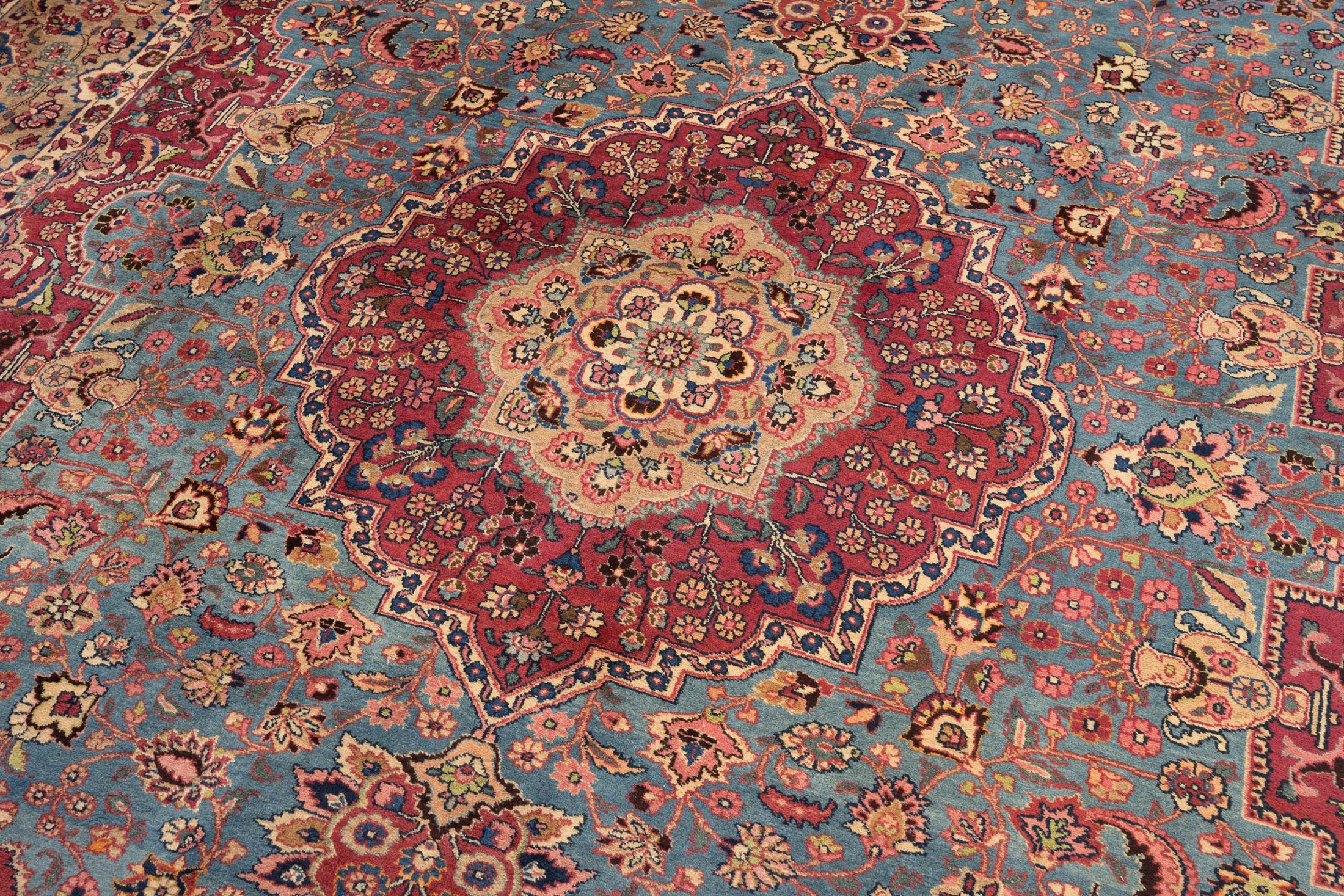 Vom Design her ähneln diese eher seltenen und sehr hochwertigen Teppiche den Mescheds, sind aber meist feiner geknüpft und qualitativ besser verarbeitet.