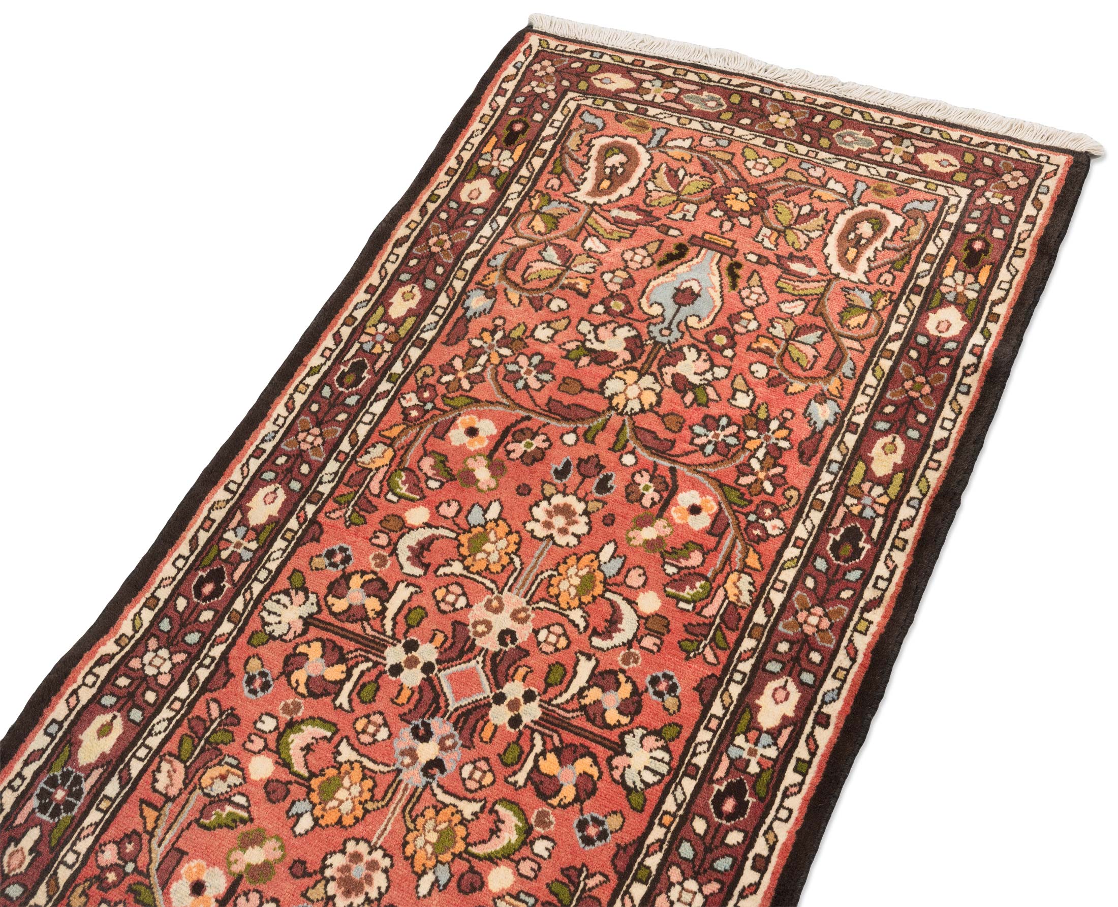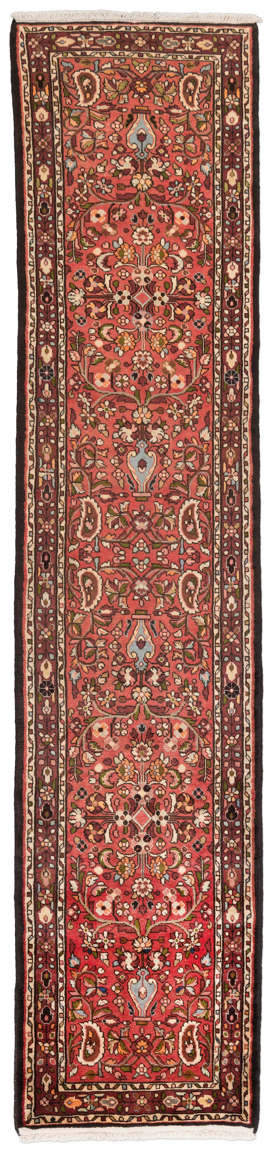 Hier präsentieren wir Ihnen einen exquisiten handgeknüpften Rudbar-Teppich aus der Provinz Hamedan, Nordwestpersien. Die Hauptfarbe dieses Teppichs ist ein lebendiges Rostrot, das die gesamte Fläche dominiert. Ergänzt wird diese warme Nuance durch ein tiefes Kastanienbraun, das die floralen Muster elegant umrahmt. Ein sanftes Himmelblau fügt sich kunstvoll in die zentralen Motive ein und verleiht dem Teppich eine erfrischende Leichtigkeit. Abgerundet wird das Farbspektrum durch ein klares Cremeweiß, das die feinen, floralen Borten kunstvoll hervorhebt.