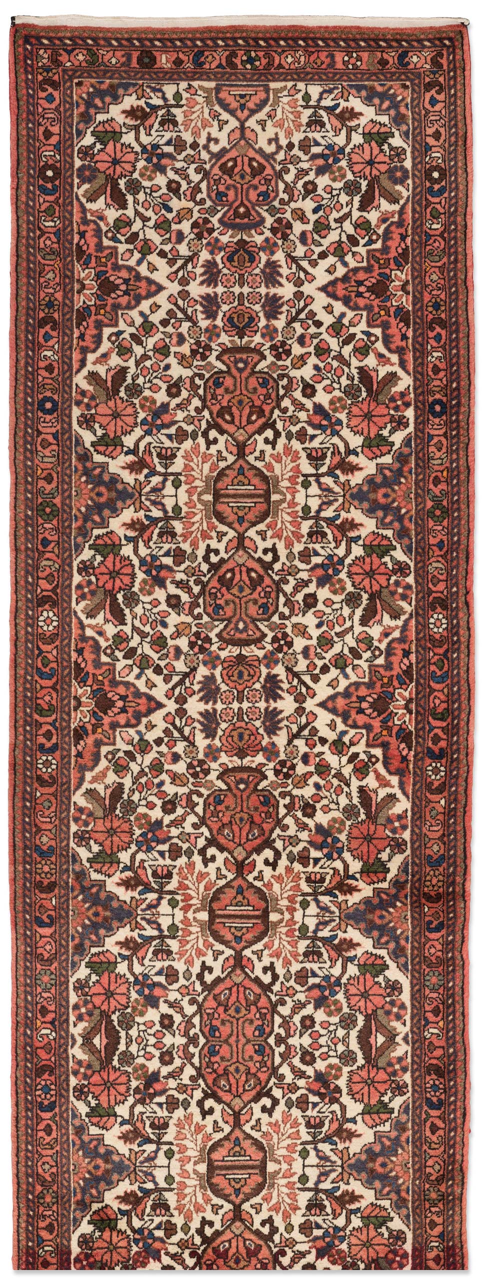 Das kleines Städtchen Rudbar ist in Nordwest-Persien. Diese Stadt ist für seine Stickerereinen berühmt geworden. In Rudbar werden in relativ geringen Mengen Teppiche hergestellt. In dieser kleinen Stadt entstehen feine Knüpfarbeiten in Stil des Herat-Musters, sei es in Allover-Zeichnung oder das Hexagon beherrschende Feld-Muster, wo das übrige Feld mit Hearti-Motiven dekoriert ist. Großes handwerkliches Können zeigt meist die helle florale Borte in Kunstvoller, filigranartiger Zeichnung.