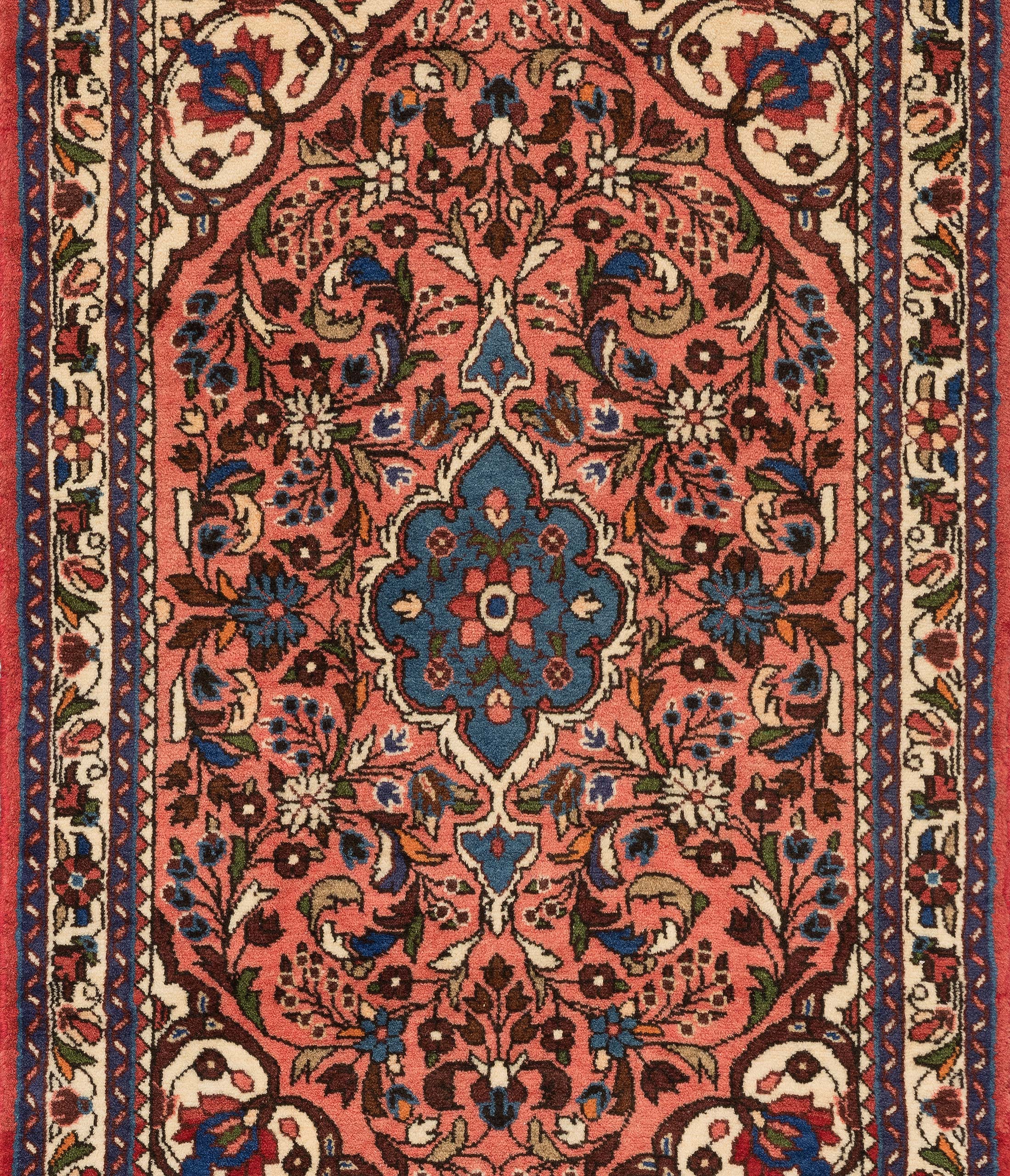 In der Provinz Hamedan hergestellt, besticht dieser Rudbar-Teppich durch seine feine Knüpfung und die hohe Handwerkskunst, die in jedem Knoten sichtbar wird. Eine Investition in zeitlose Eleganz und hervorragende Qualität.