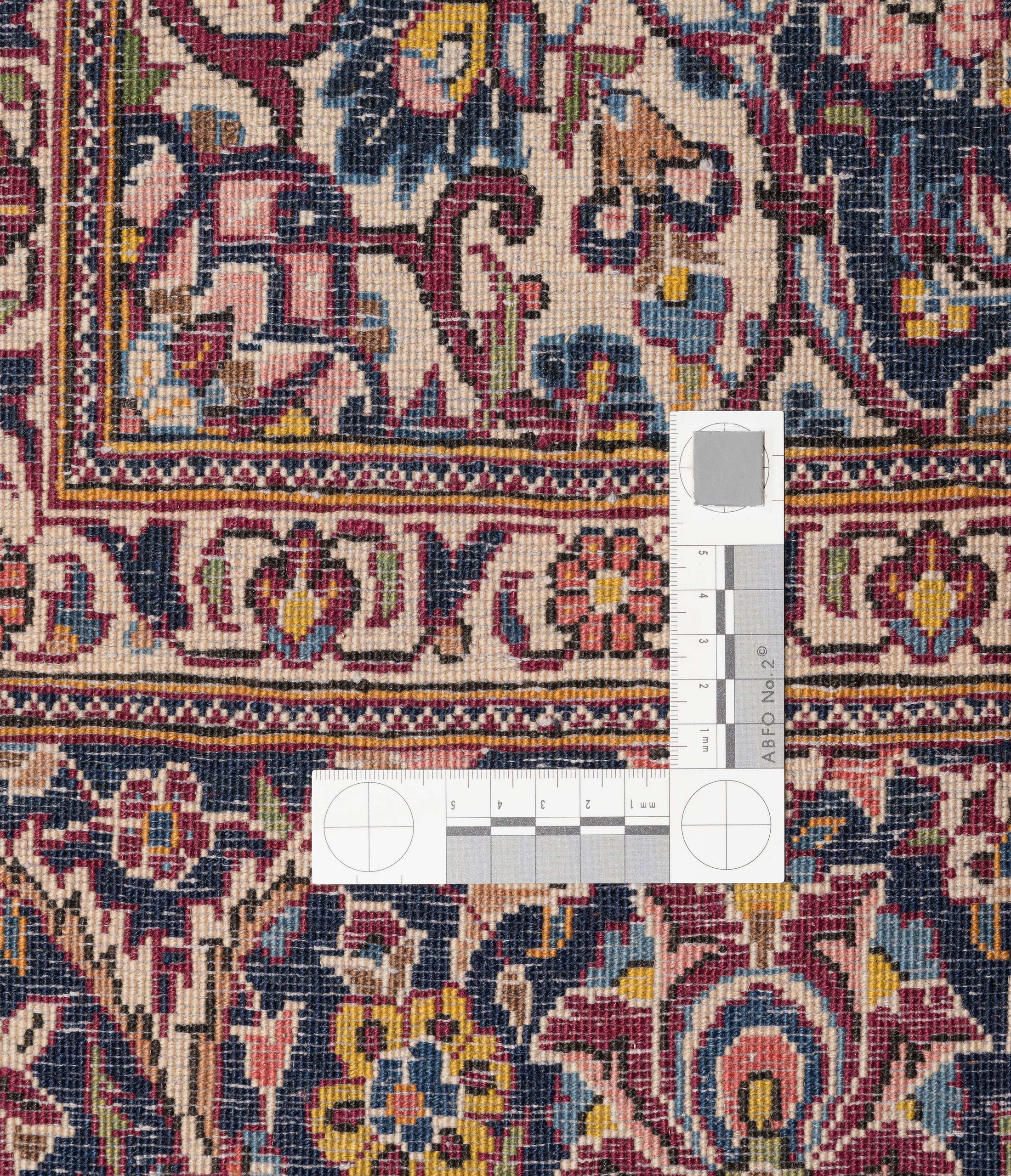 Die Musterung ist geprägt von traditioneller floraler Ornamentik, die kunstvoll und symmetrisch arrangiert ist. Mit einer beeindruckenden Knüpfdichte von ca. 300.000 Knoten pro Quadratmeter zeigt dieser Teppich nicht nur handwerkliche Meisterschaft, sondern auch eine bemerkenswerte Haltbarkeit und Detailgenauigkeit.