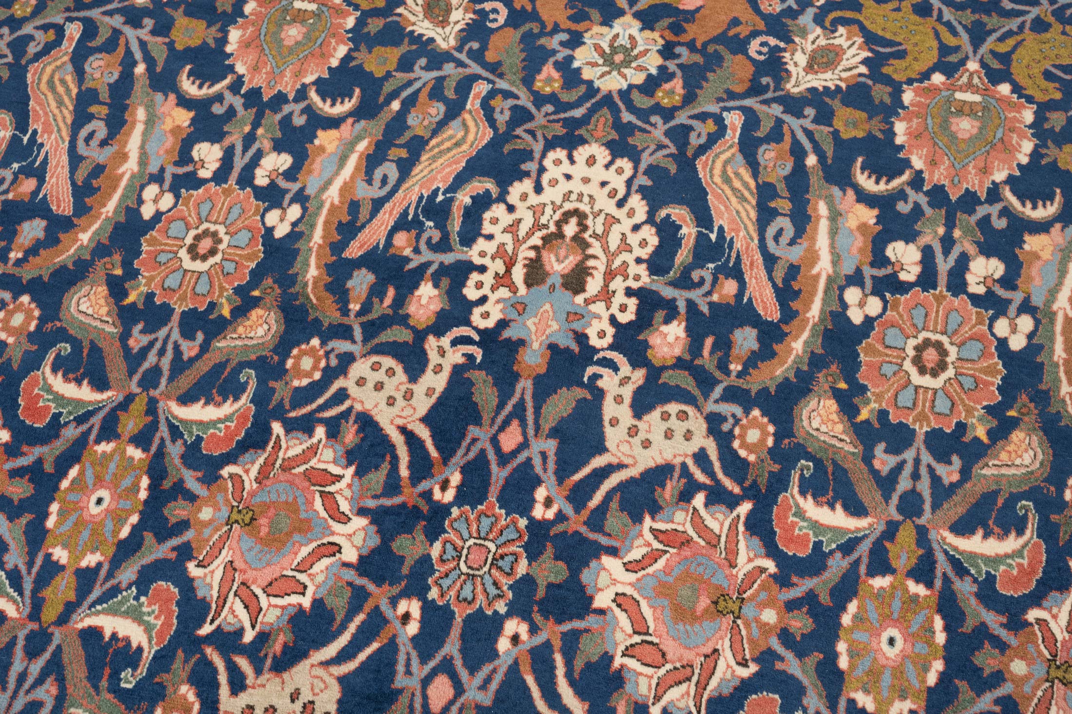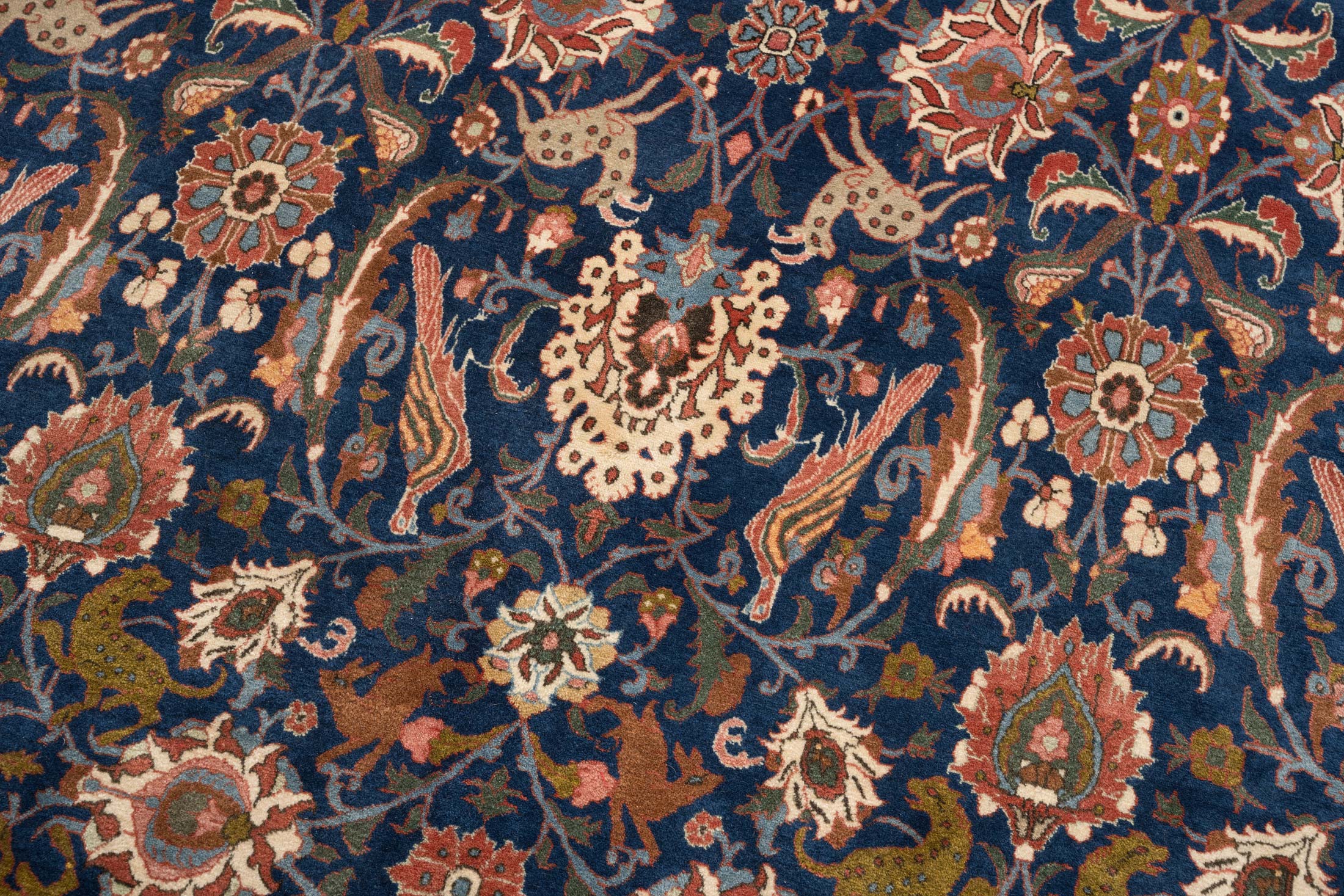 Da dieses Exemplar zur absoluten Spitzenqualität seiner Gattung zählt, ist es prädestiniert für den Glam-Style, der sich durch Luxus, edle Materialien und eine Prise Extravaganz definiert. Die hochfeine Verarbeitung und der schimmernde Glanz der alten Wolle korrespondieren hervorragend mit Samtsofas, Messingelementen und Kristalllüstern. Das majestätische Blau und die kunstvollen Ornamente verleihen dem Raum eine royale Aura und unterstreichen den Anspruch auf Exklusivität und gehobenen Lebensstil. Wer diesen Teppich wählt, entscheidet sich gegen einfache Qualitäten und für ein Statussymbol, das Glamour mit kulturellem Tiefgang verbindet.