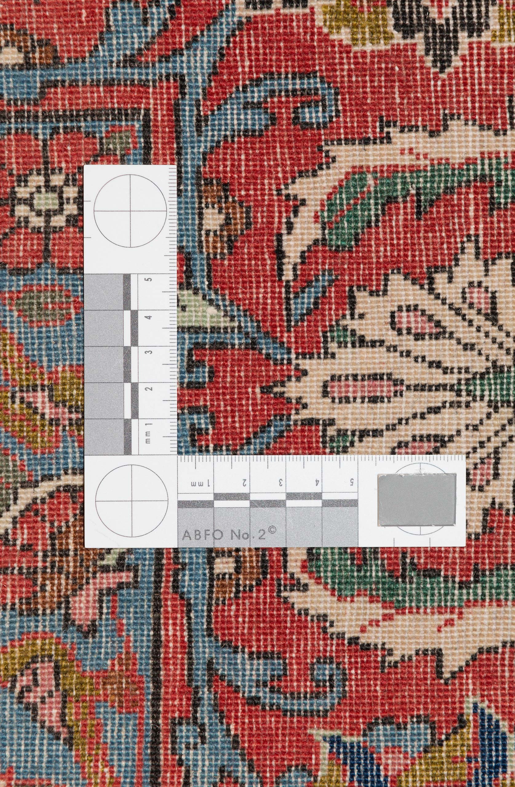 Mit ca. 350.000 Knoten pro Quadratmeter zeugt dieser Teppich von einer hochfeinen Knüpfung, die ihn zu einem erstklassigen Stück seiner Art macht. Er wurde um 1960 gefertigt und befindet sich in einem ausgezeichneten Zustand. Nur natürliche Materialien und Farben wurden verwendet, was die Authentizität und Qualität dieses einzigartigen Kunstwerks unterstreicht. Hier präsentieren wir Ihnen ein authentisches Stück traditioneller persischer Teppichkunst, das sowohl Ihren Raum verschönert als auch ein Stück Geschichte erzählt.