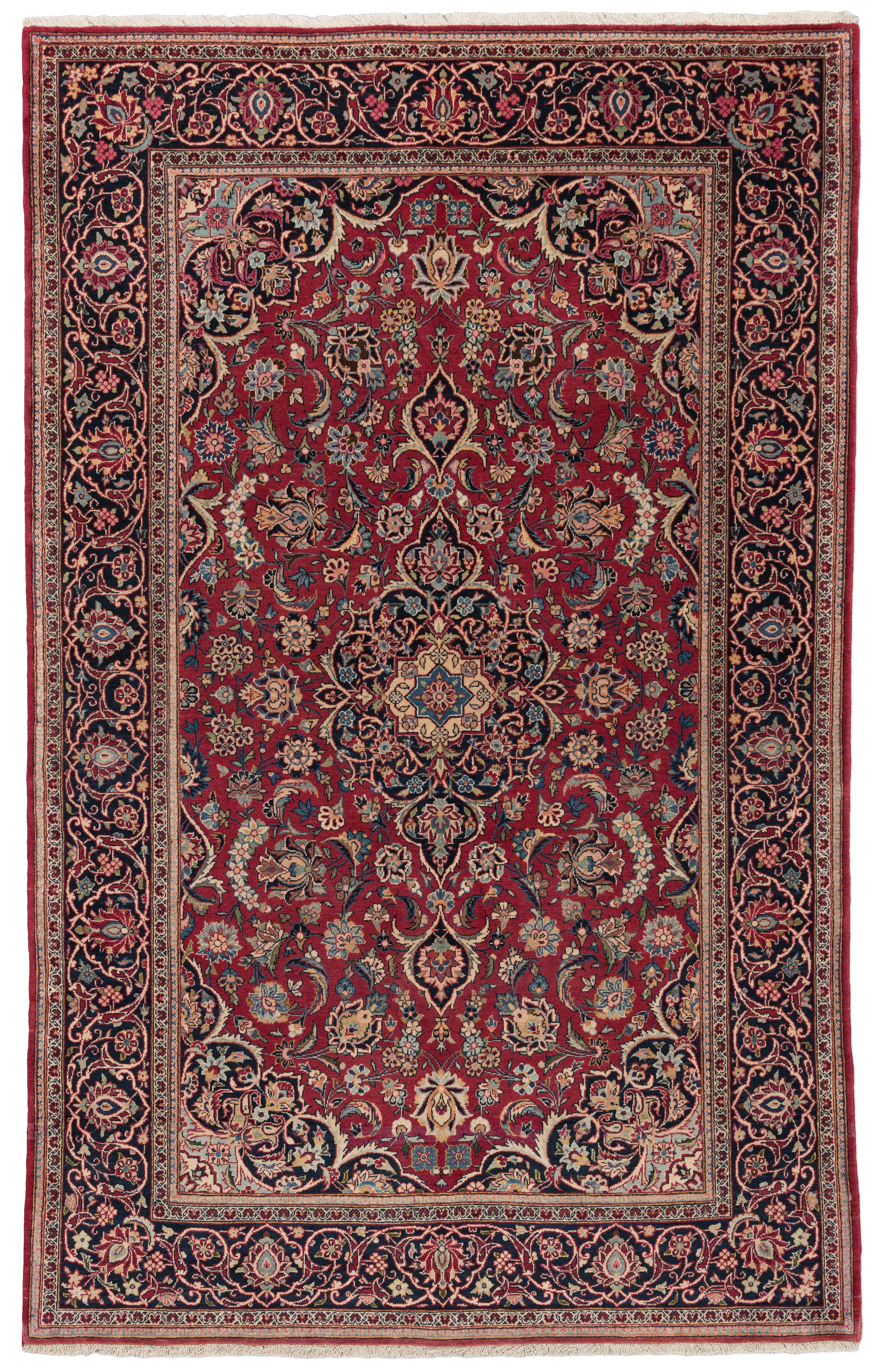 Die historische Bedeutung des Keschan-Teppichs, der aus dem berühmten Teppichgebiet im Elburs-Gebirge stammt, spiegelt sich in der kunstvollen Gestaltung wider. Die Verwendung natürlicher Materialien und die feine Knüpfung machen ihn zu einem begehrten Sammlerstück. Der sehr gute Zustand, dem Alter entsprechend, unterstreicht die Langlebigkeit und Qualität dieses Meisterwerks. Dieser Teppich ist nicht nur ein dekoratives Element, sondern ein Stück persischer Geschichte und Kultur, das jedem Raum eine besondere Atmosphäre verleiht.