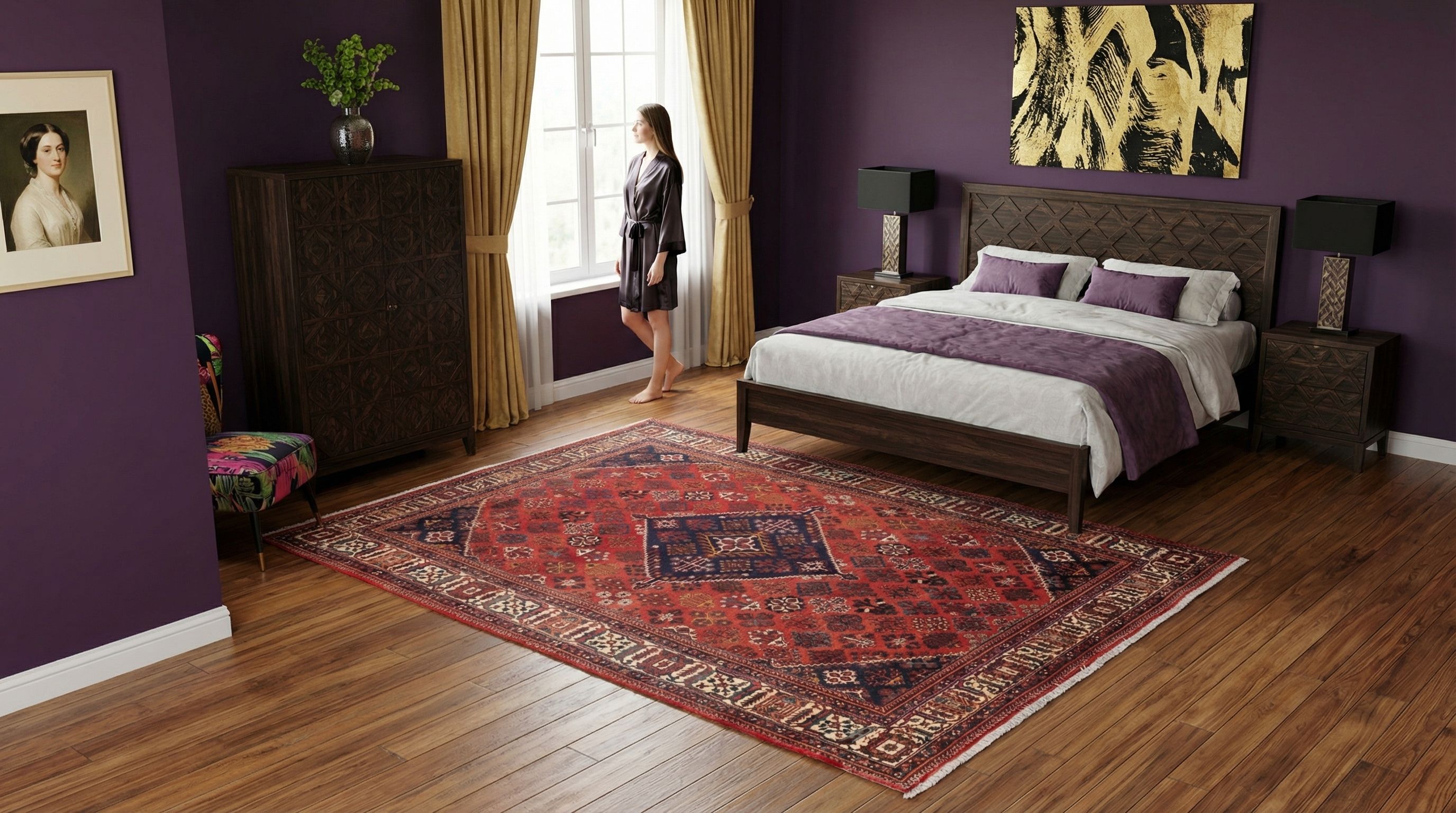 Dieser handgeknüpfte Mey-Mey-Teppich aus Persien besticht durch seine intensive rostrote Hauptfarbe, die eine warme und einladende Atmosphäre schafft. Ergänzt wird das Farbschema durch ein tiefes Blau und cremige Akzente, die harmonisch in das Gesamtdesign integriert sind. Die Musterung zeigt stilisierte Blumen und Blüten, die kunstvoll in das Innenfeld aus einer markanten Raute eingearbeitet sind. Diese Komposition verleiht dem Teppich einen klassischen, aber dennoch frischen Ausdruck. Mit ...mehr Beschreibung