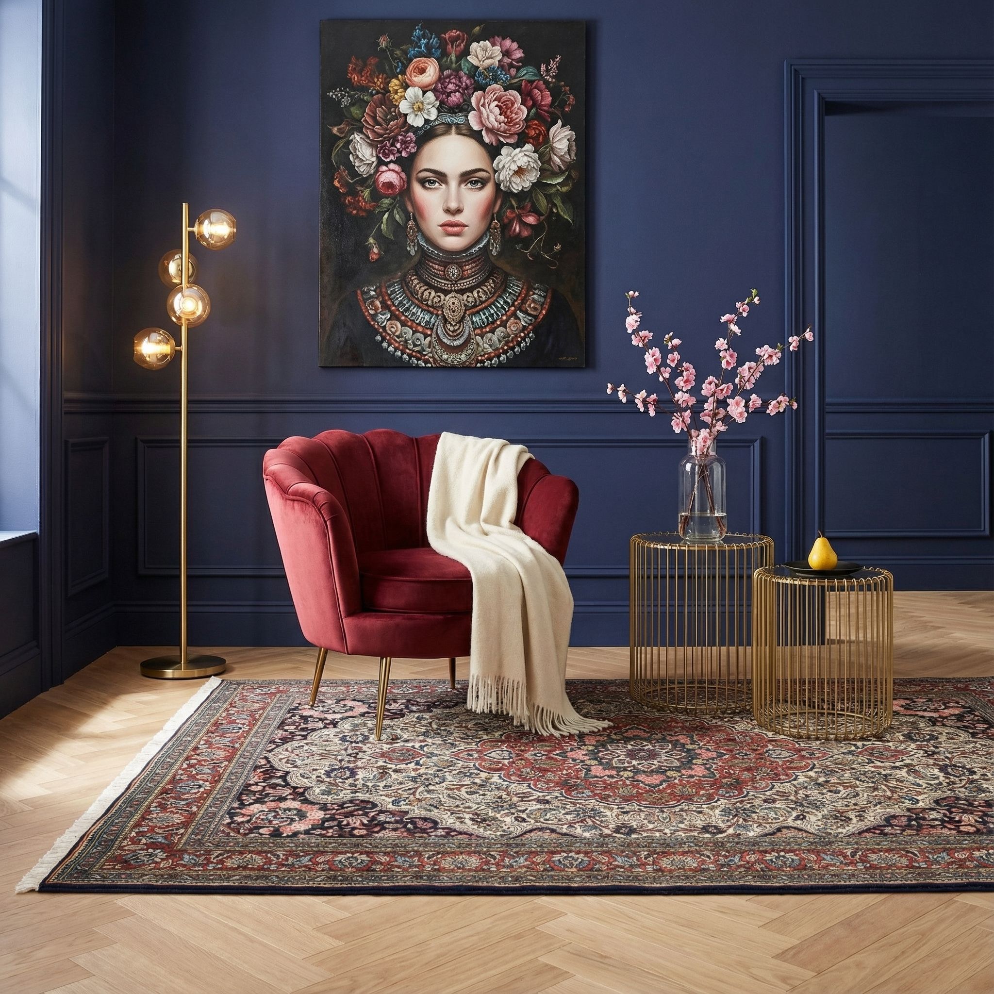 Dieser exquisite Bachtiar-Teppich besticht durch seine harmonische Farbkomposition und feinste Handwerkskunst. Die Hauptfarbe ist ein tiefes Rubinrot, das dem Teppich eine warme, einladende Atmosphäre verleiht. Ergänzt wird dieses kräftige Rot durch ein elegantes Mitternachtsblau, das dem Design Tiefe und Raffinesse verleiht. Ein sanftes Elfenbeinweiß hebt die floralen Muster hervor und verleiht dem Gesamtbild eine freundliche Leichtigkeit. Ein Hauch von Rosa bringt eine verspielte Note ...mehr Beschreibung