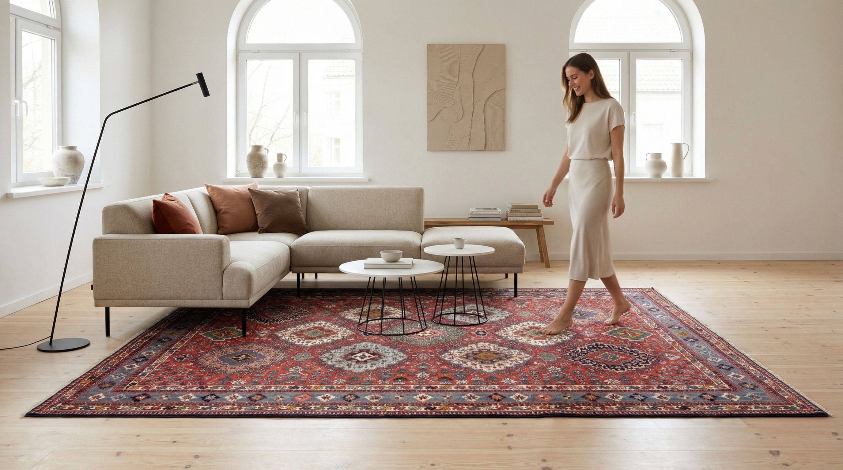 Unsere handgeknüpften Teppiche sind reine Handarbeit aus erlesenen Naturmaterialien. Echte Knoten sowie Schuss- und Kettfäden verleihen ihnen außergewöhnliche Langlebigkeit, Tiefe und bleibenden Wert - jeder Knoten ein Ausdruck echter Handwerkskunst. Handgefertigt und komplett ohne Kleber - für eine authentische, langlebige Qualität.Handgeknüpfte Teppiche - ob klassische Orientteppiche oder moderne Designs - lassen sich fachgerecht waschen, sind für den täglichen Gebrauch ...