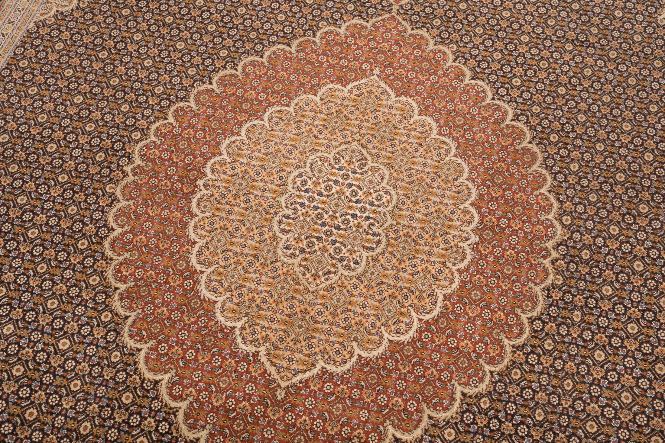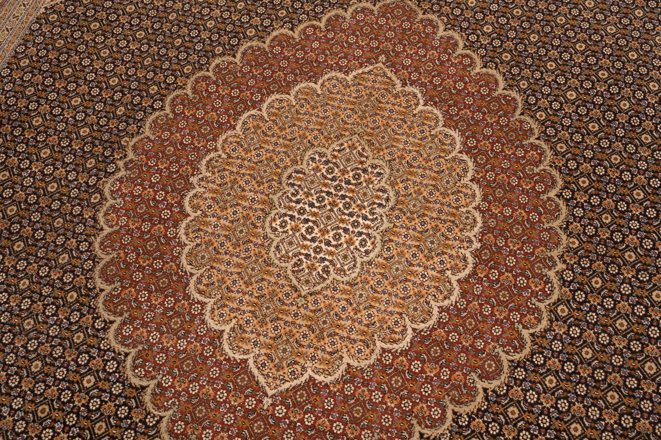 Die Knotenanzahl pro qm spielt bei Täbriz eine große Rolle, jedoch ist die Feinheit bei weitem nicht alles. Bei gleicher Feinheit können zwei Täbriz-Teppiche sehr verschieden im Wert sein. Die Farbstellung und Musterung spielen dann die wichtigste Rolle bei der Wertfindung. Auch die Händler und Knüpfer im Iran wissen, dass Schönheit immer über Feinheit steht. Ein farb- und musterlich sehr gelungener bzw. harmonischer Täbriz-Teppich, erzielt deutlich höhere Preise und ist auch wertbeständiger.