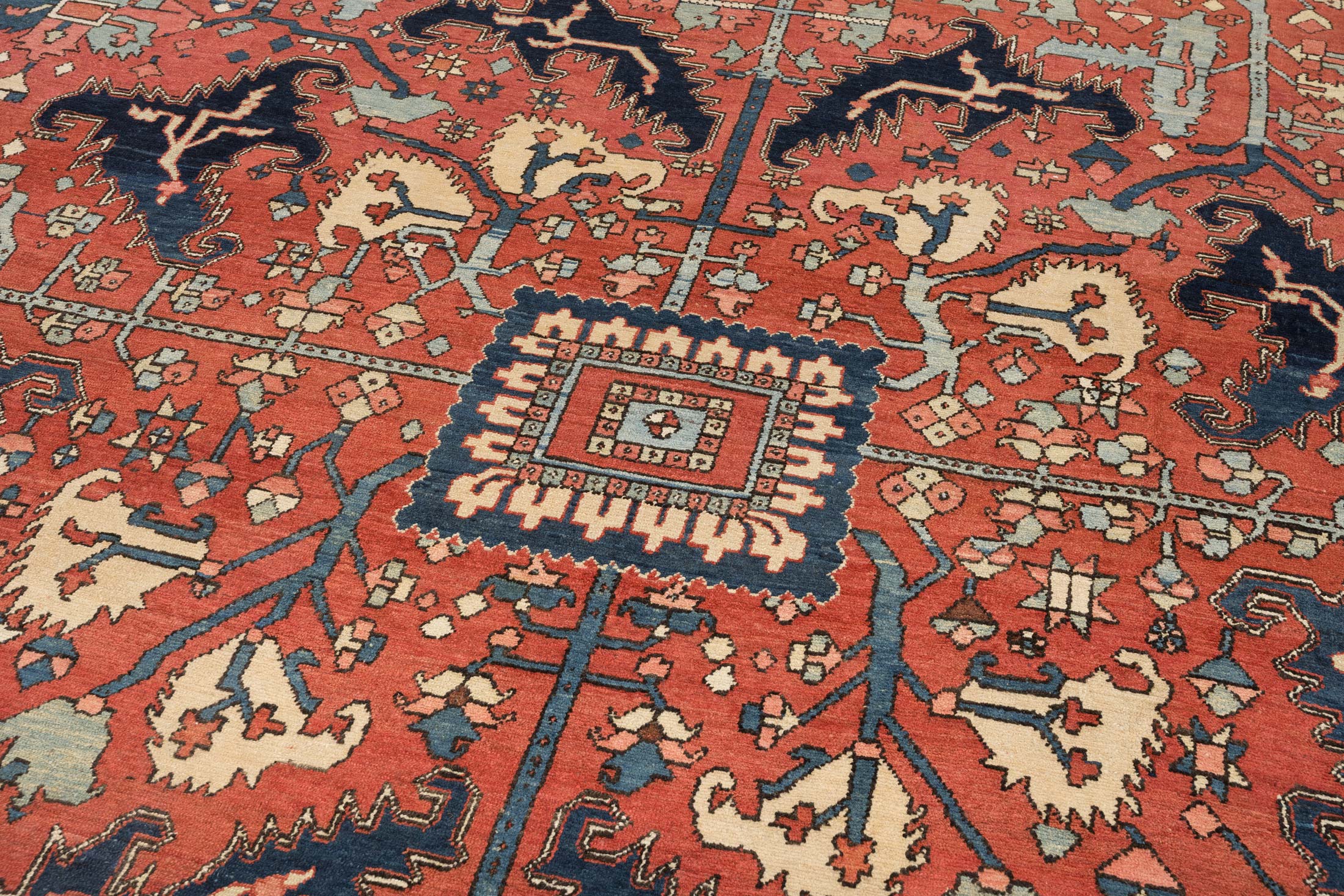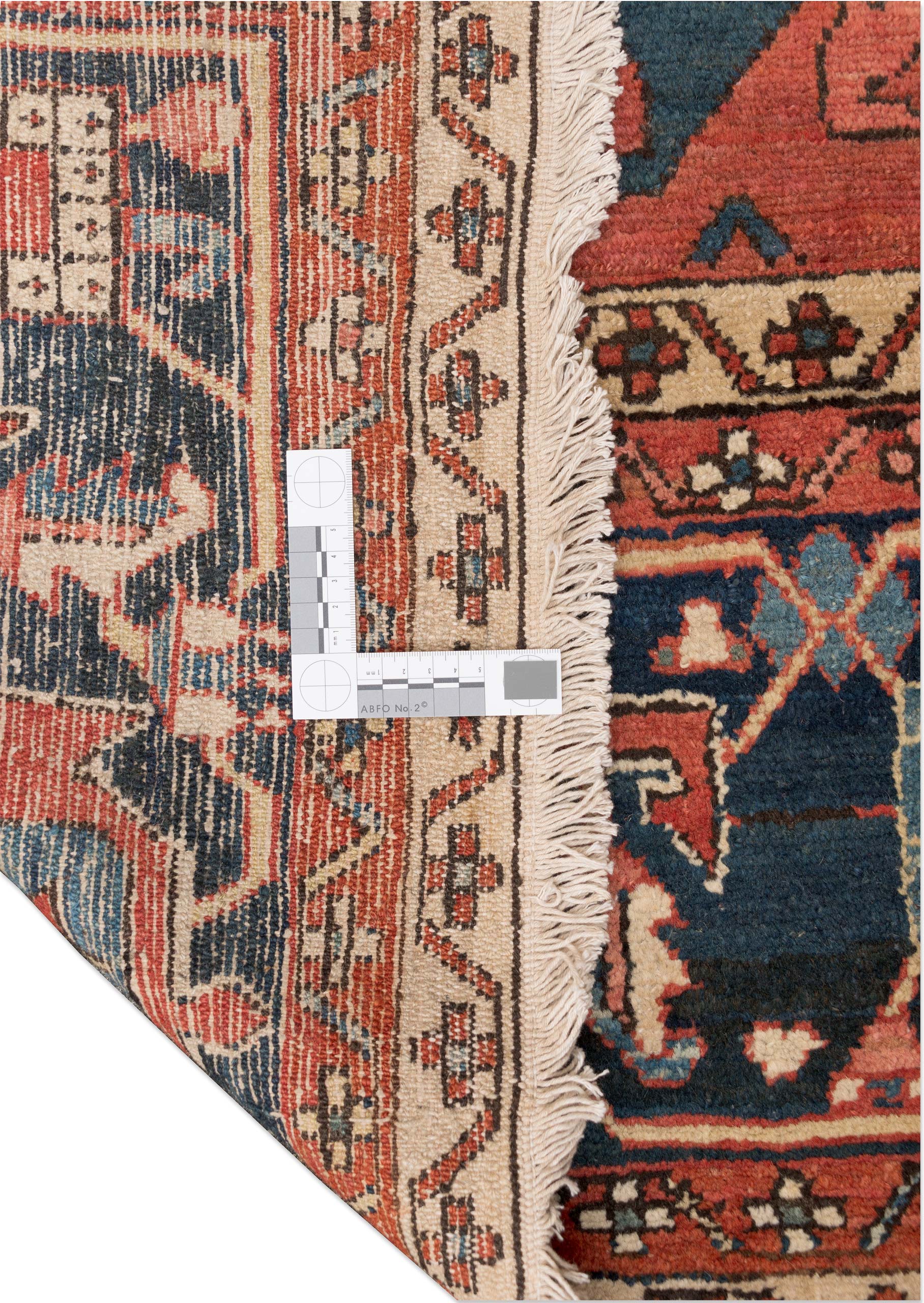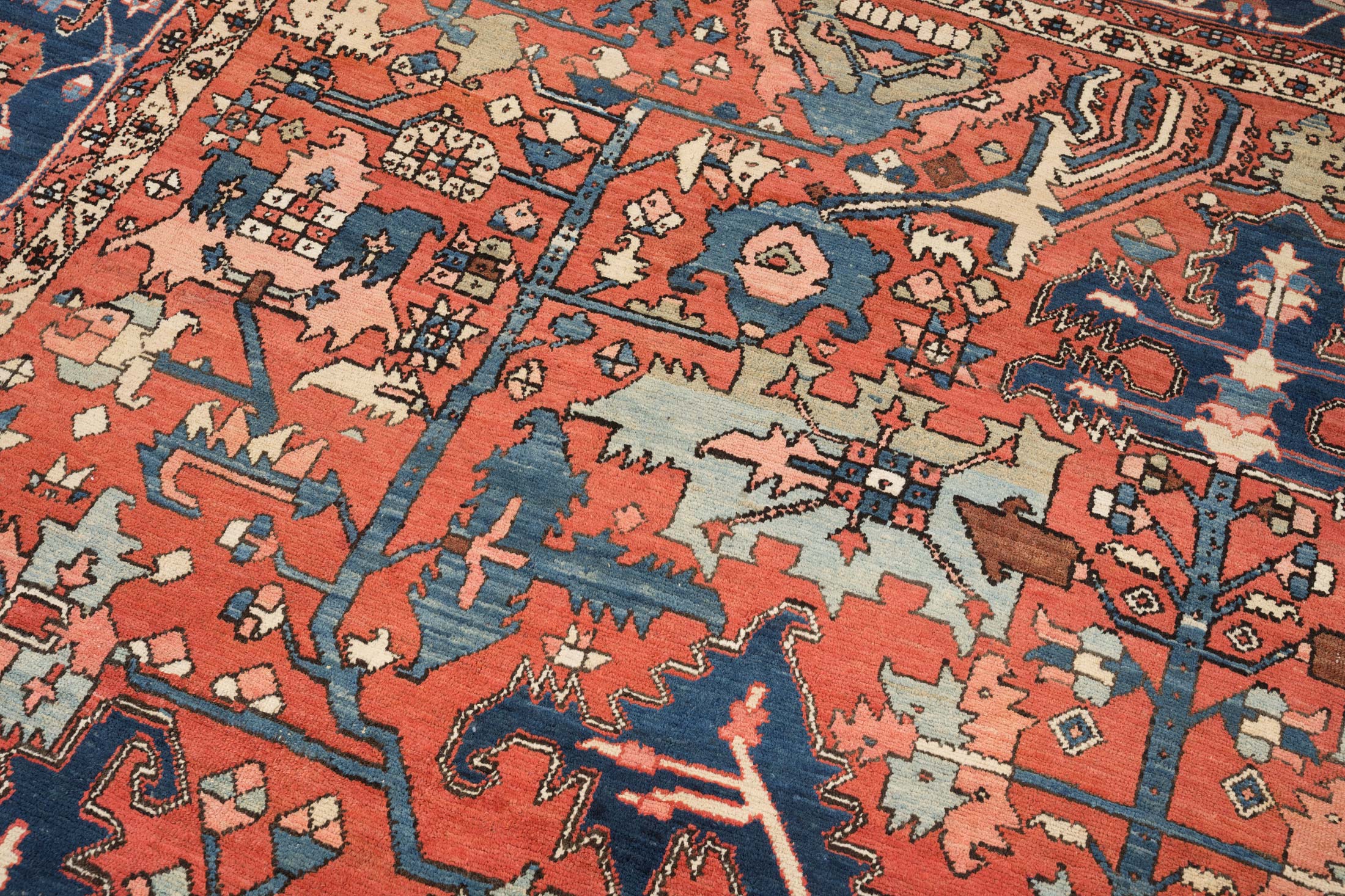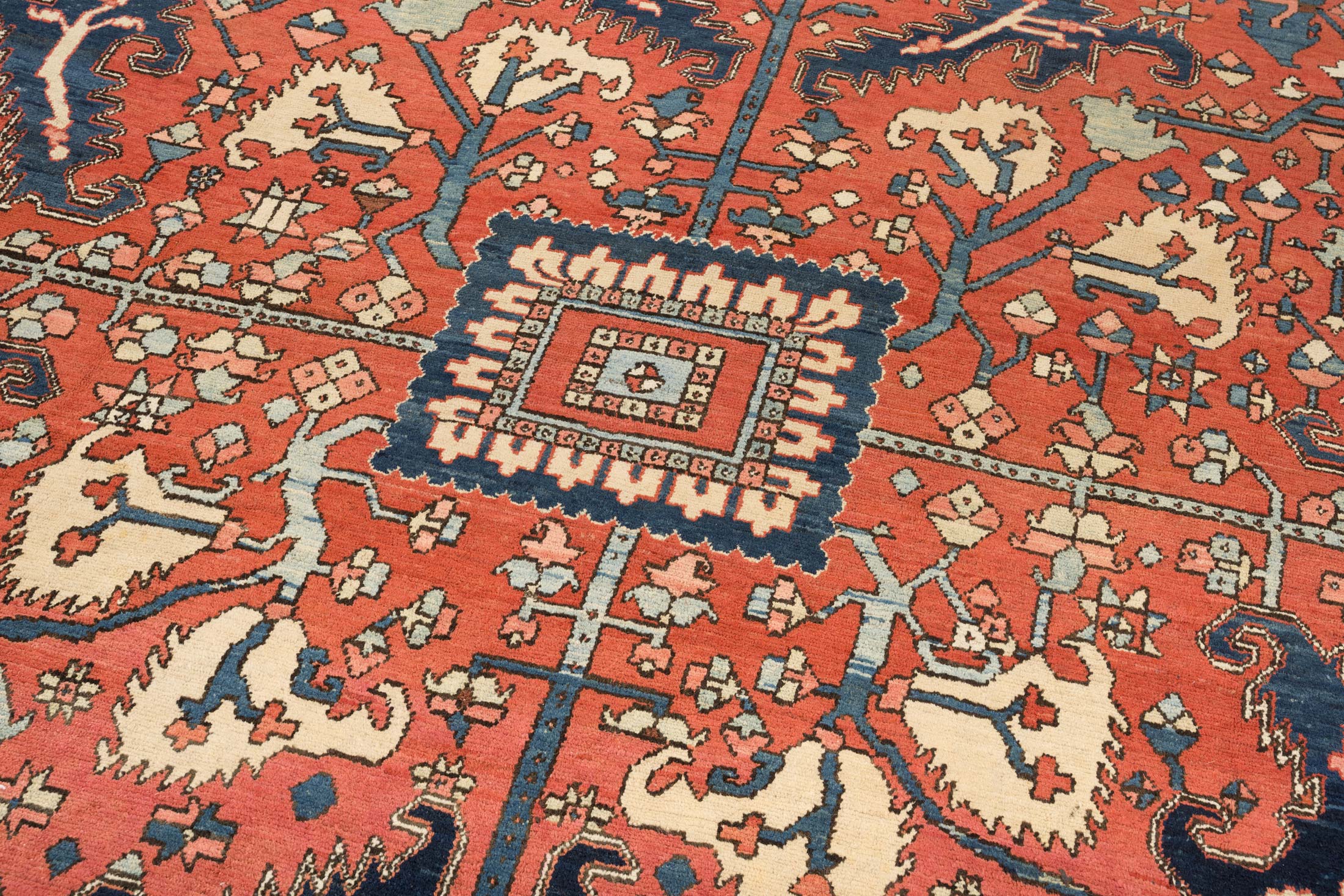 Dieser beeindruckende Bakhshayesh-Teppich aus Nordpersien, antik um 1880, besticht durch seine leuchtende Hauptfarbe Rot, die eine warme und einladende Atmosphäre schafft. Begleitet wird dieser reiche Rotton von tiefem Blau und zarten Beigetönen, die harmonisch miteinander interagieren. Die meisterhaft handgeknüpften Muster zeichnen sich durch ein zentrales Medaillon aus, umgeben von floralen und geometrischen Elementen, die sowohl Symmetrie als auch Detailreichtum zeigen. Die stilisierten ...mehr Beschreibung
