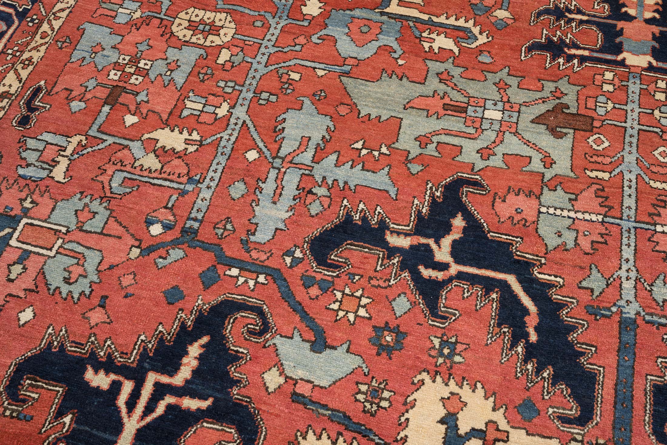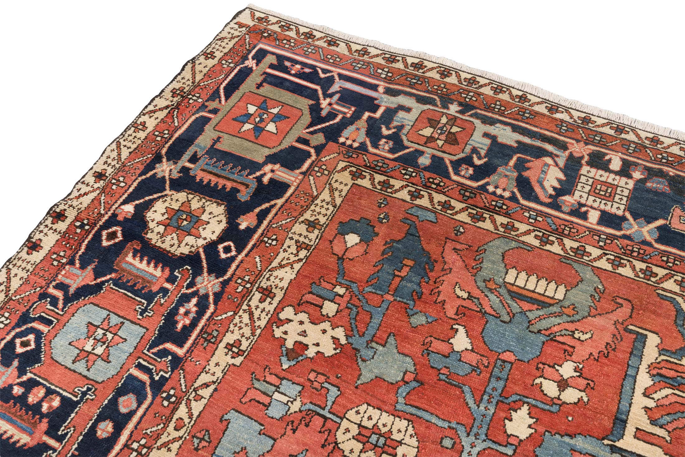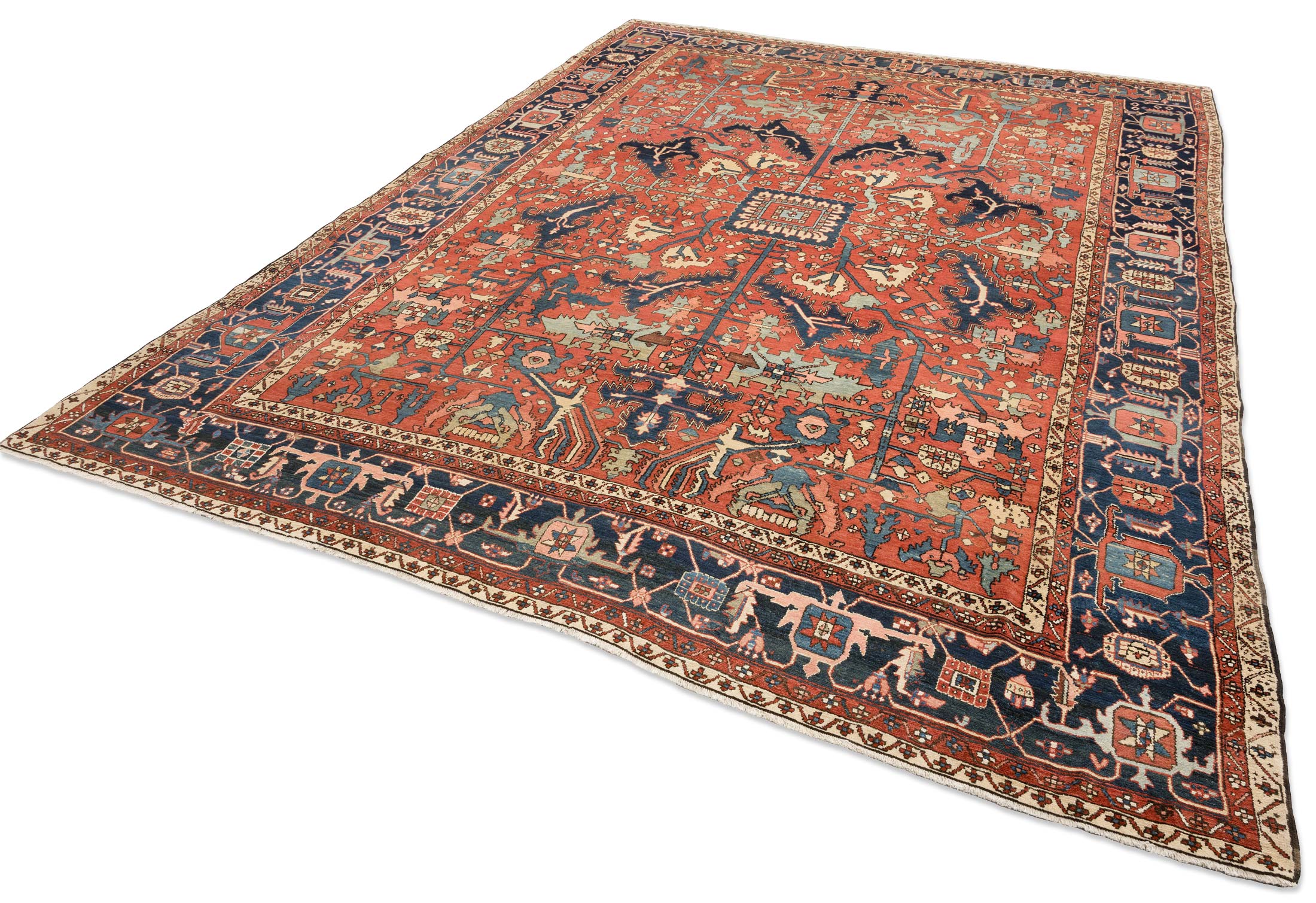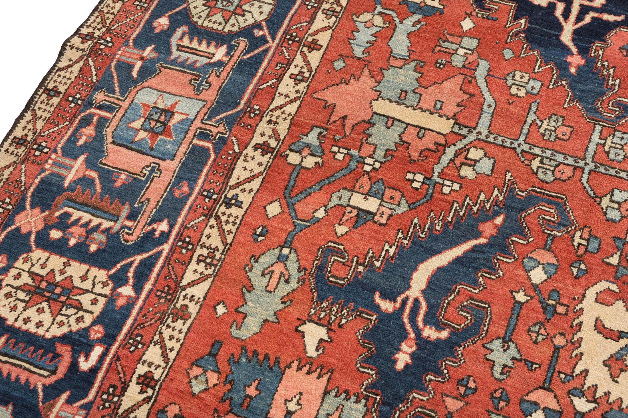 Dieser beeindruckende Bakhshayesh-Teppich aus Nordpersien, antik um 1880, besticht durch seine leuchtende Hauptfarbe Rot, die eine warme und einladende Atmosphäre schafft. Begleitet wird dieser reiche Rotton von tiefem Blau und zarten Beigetönen, die harmonisch miteinander interagieren. Die meisterhaft handgeknüpften Muster zeichnen sich durch ein zentrales Medaillon aus, umgeben von floralen und geometrischen Elementen, die sowohl Symmetrie als auch Detailreichtum zeigen. Die stilisierten ...mehr Beschreibung