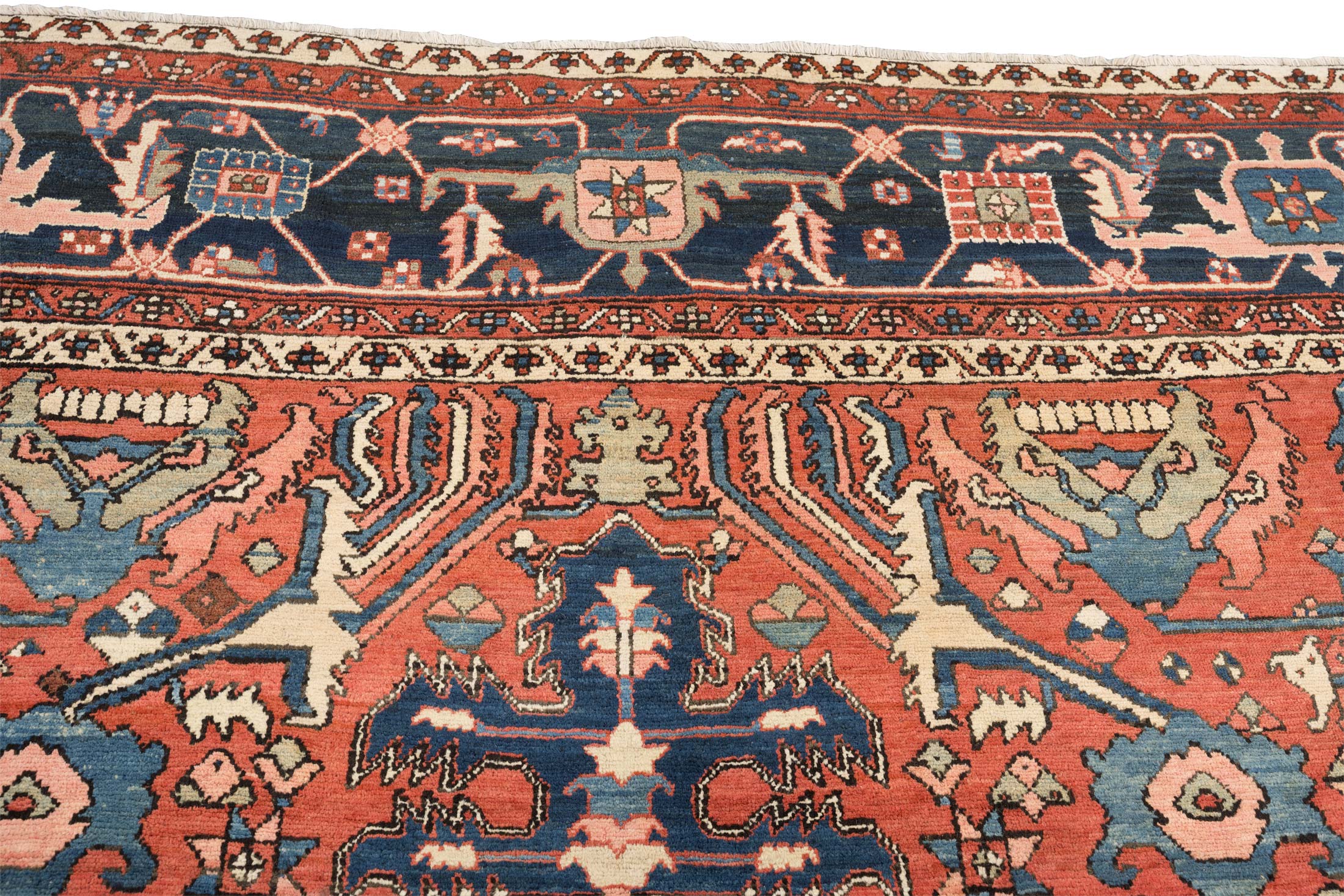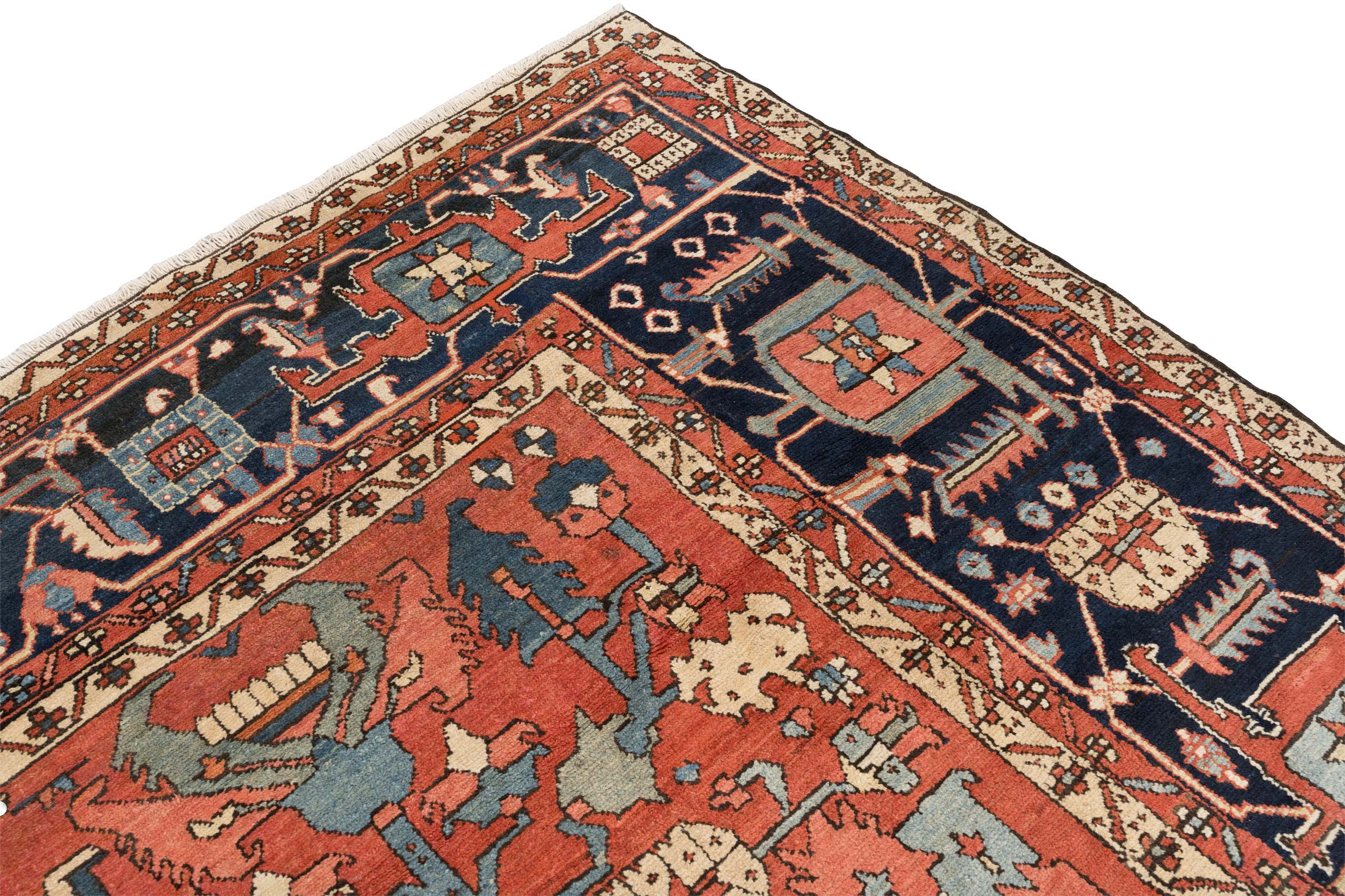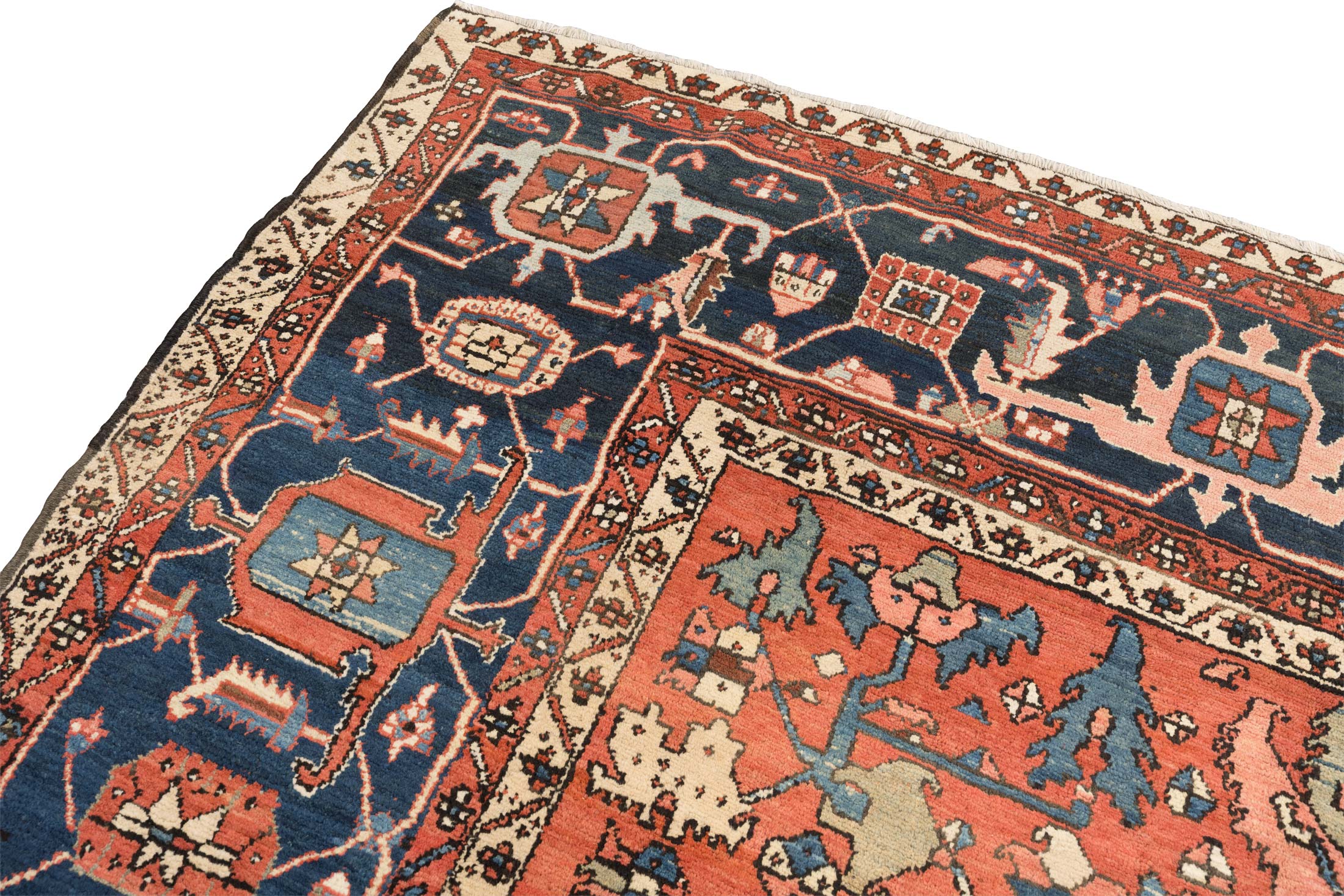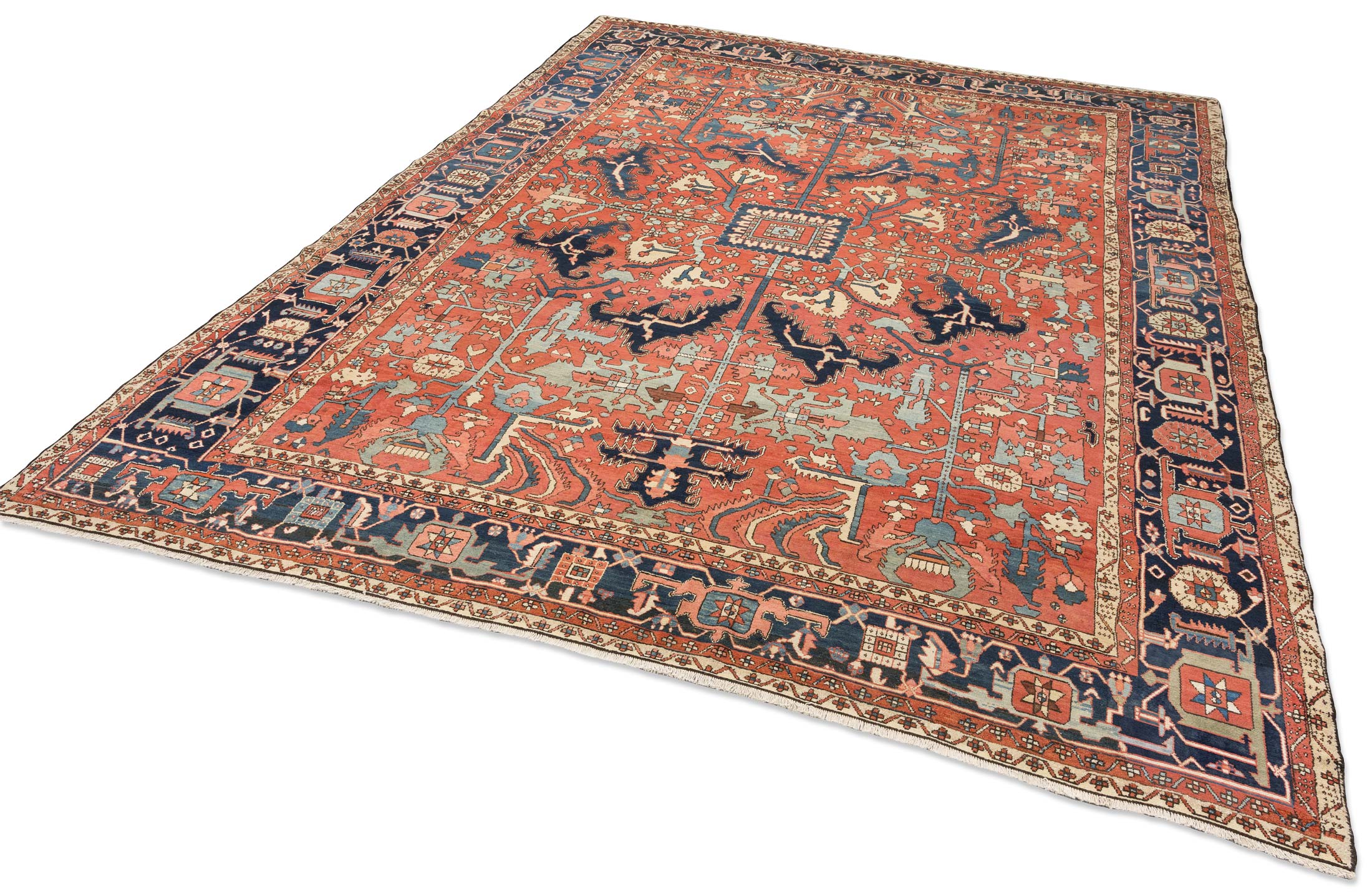 Dieser beeindruckende Bakhshayesh-Teppich aus Nordpersien, antik um 1880, besticht durch seine leuchtende Hauptfarbe Rot, die eine warme und einladende Atmosphäre schafft. Begleitet wird dieser reiche Rotton von tiefem Blau und zarten Beigetönen, die harmonisch miteinander interagieren. Die meisterhaft handgeknüpften Muster zeichnen sich durch ein zentrales Medaillon aus, umgeben von floralen und geometrischen Elementen, die sowohl Symmetrie als auch Detailreichtum zeigen. Die stilisierten ...mehr Beschreibung