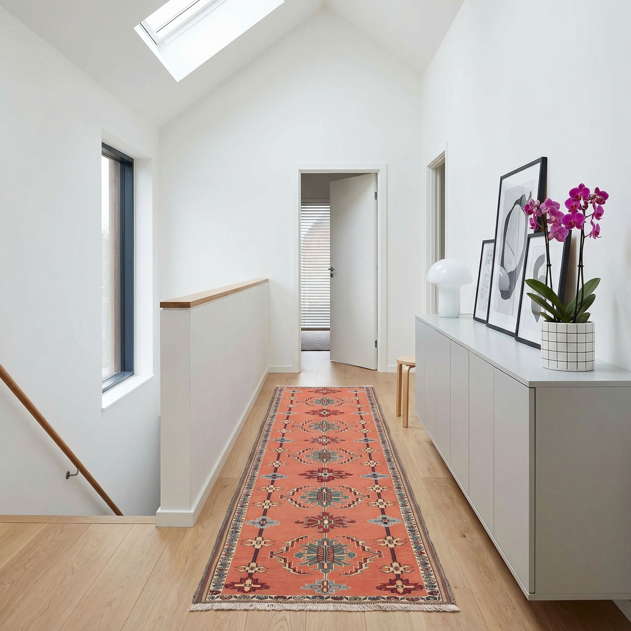 Der New-Country-Style lebt von der Verbindung aus ländlicher Gemütlichkeit und moderner Frische, wofür dieser Läufer aus handversponnener Wolle die ideale Basis bildet. Seine warmen Terracotta- und Naturtöne fügen sich harmonisch zu hellen Holzmöbeln, Leinenstoffen und frischen Wiesenblumen und schaffen ein einladendes Cottage-Flair. Die aussergewöhnliche Robustheit der Sumack-Technik macht ihn zum perfekten Begleiter in viel genutzten Bereichen wie dem Flur oder der Wohnküche. Hier trifft rustikaler Charme auf höchste Qualität, wodurch Ihr Zuhause jene unaufgeregte, aber wertige Behaglichkeit erhält.