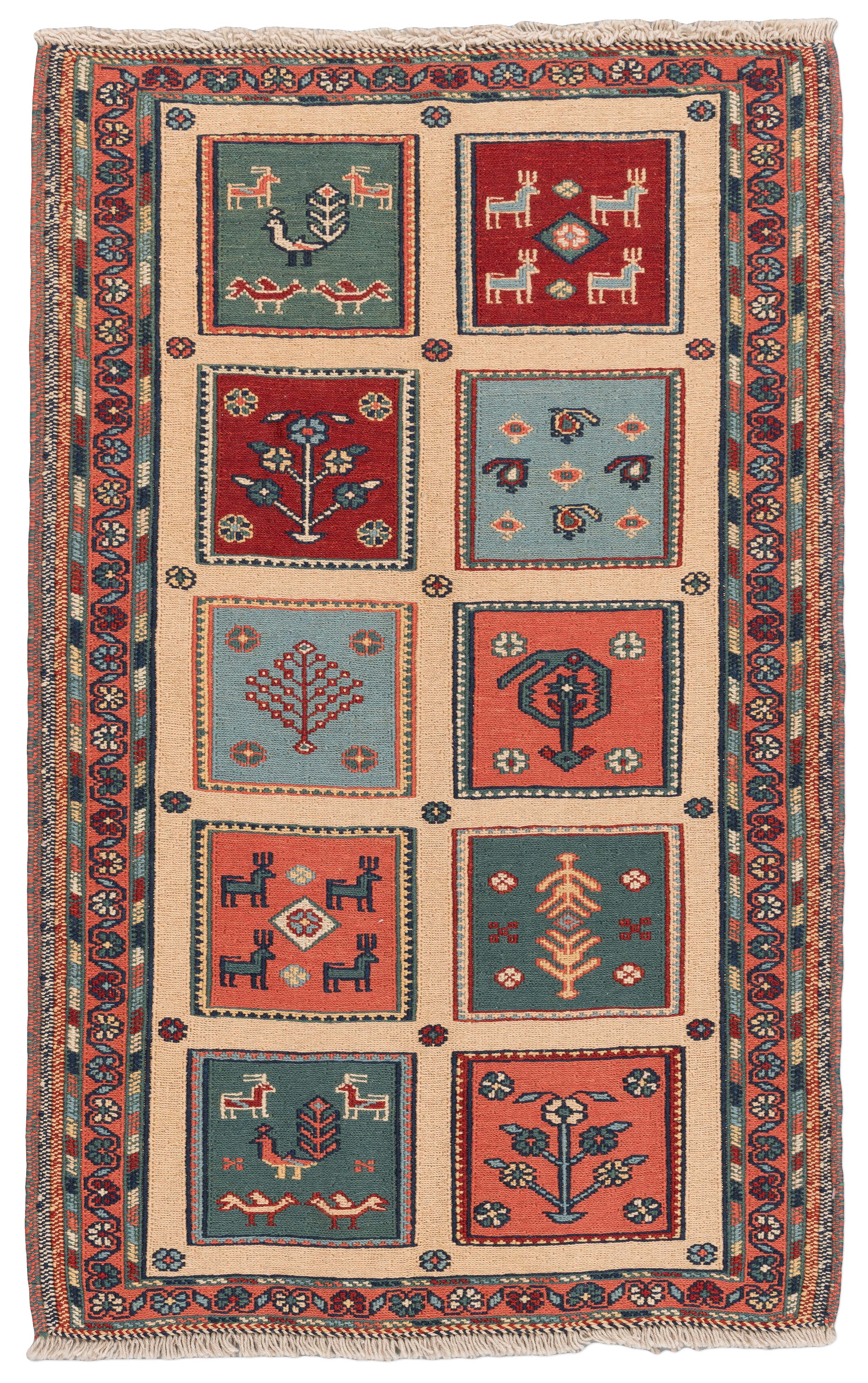 Ein weiteres Zeichen für die hohe Langlebigkeit des Afschar-Tabii ist die Existenz vieler wertvoller antiker Sumack-Kelims, die über 100 Jahre alt sind. Beachten Sie bitte, dass gewebte Kelims, die weithin verbreitet sind, nichts mit diesen aufwändigen Sumack-Kelims zu tun haben. Die gewebten Kelims sind einfacher herzustellen und erfordern nur einen Bruchteil der Arbeitszeit.