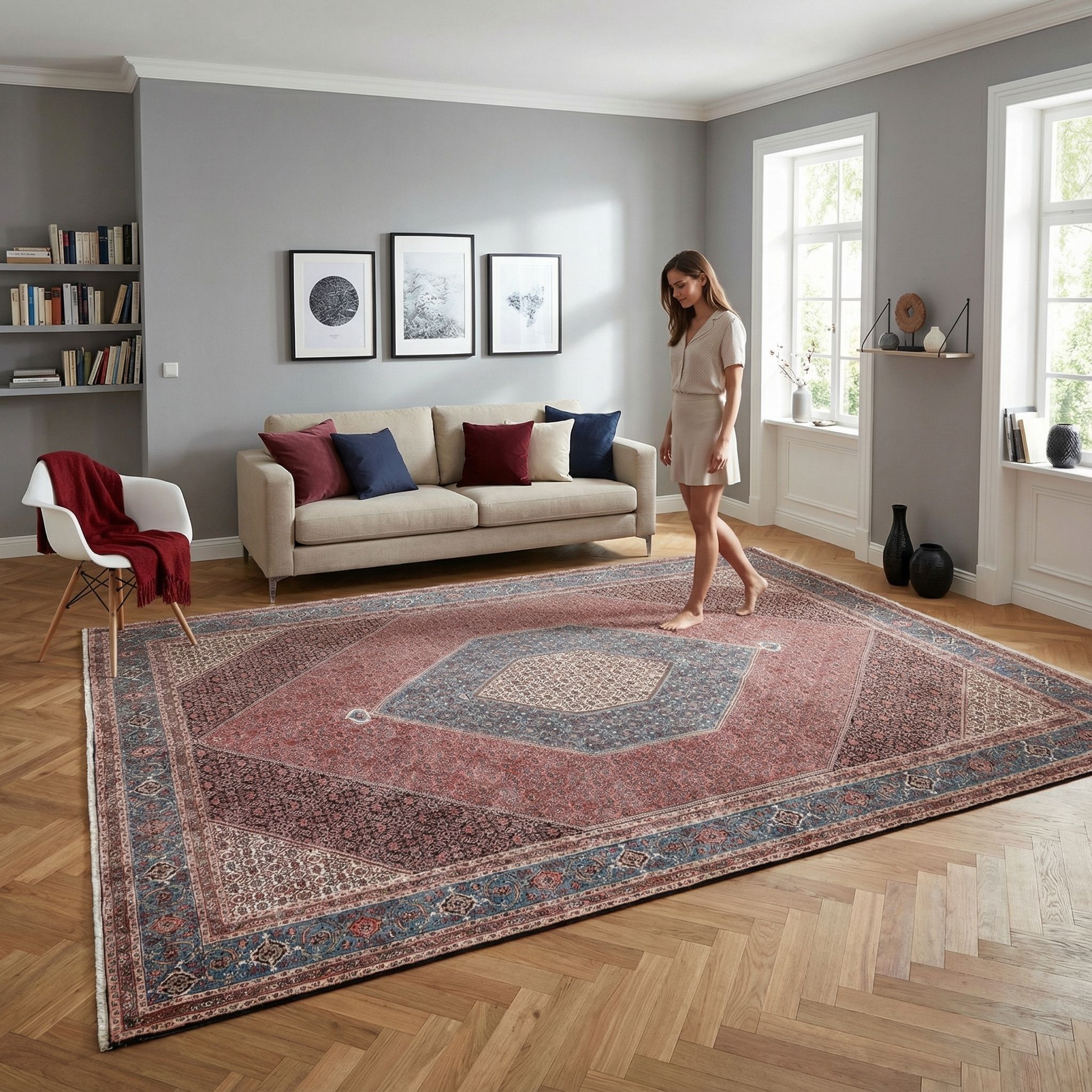 Unsere handgeknüpften Teppiche sind reine Handarbeit aus erlesenen Naturmaterialien. Echte Knoten sowie Schuss- und Kettfäden verleihen ihnen außergewöhnliche Langlebigkeit, Tiefe und bleibenden Wert - jeder Knoten ein Ausdruck echter Handwerkskunst. Handgefertigt und komplett ohne Kleber - für eine authentische, langlebige Qualität.Handgeknüpfte Teppiche - ob klassische Orientteppiche oder moderne Designs - lassen sich fachgerecht waschen, sind für den täglichen Gebrauch ...