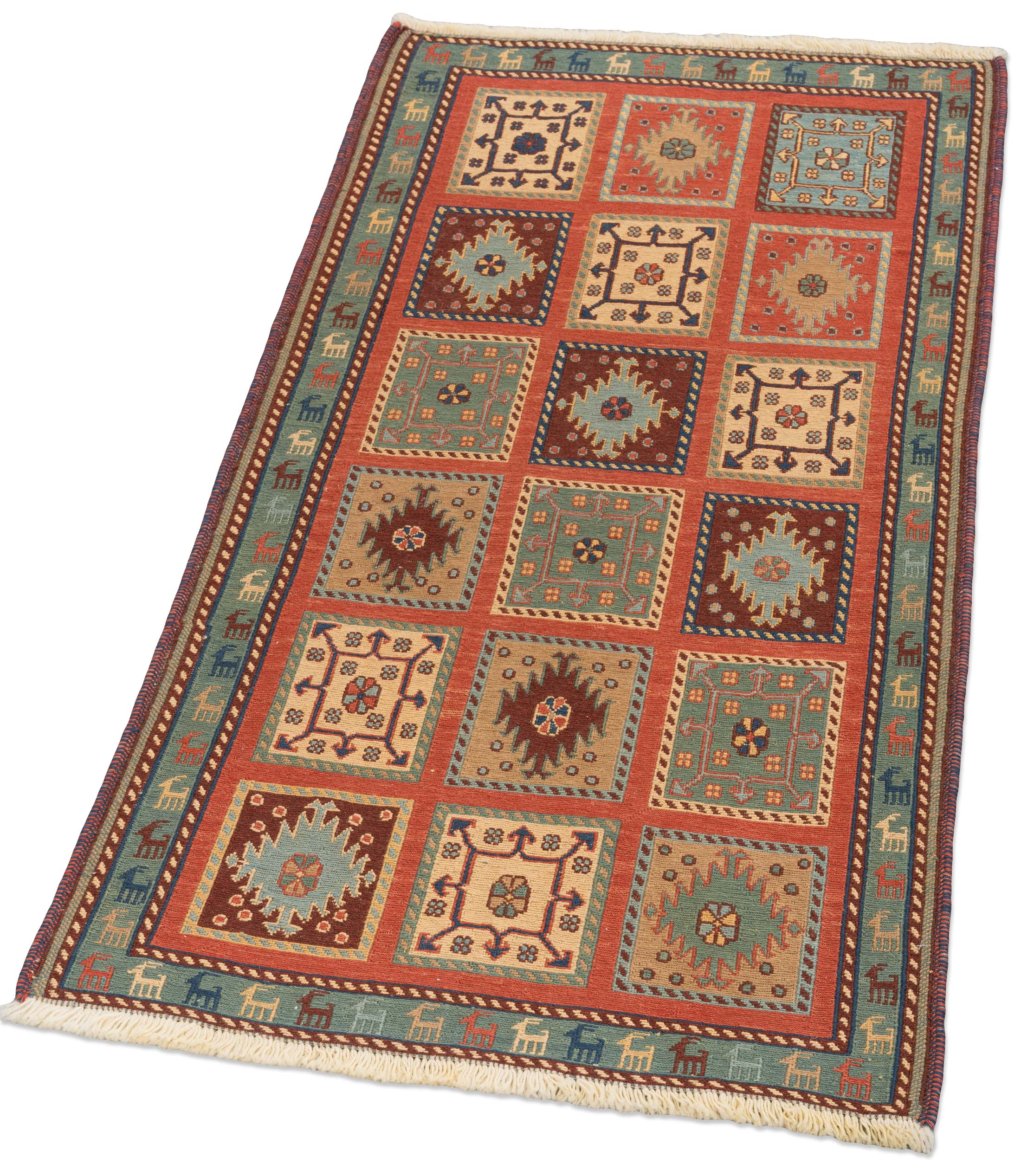 Ein weiteres Zeichen für die hohe Langlebigkeit des Afschar-Tabii ist die Existenz vieler wertvoller antiker Sumack-Kelims, die über 100 Jahre alt sind. Beachten Sie bitte, dass gewebte Kelims, die weithin verbreitet sind, nichts mit diesen aufwändigen Sumack-Kelims zu tun haben. Die gewebten Kelims sind einfacher herzustellen und erfordern nur einen Bruchteil der Arbeitszeit.