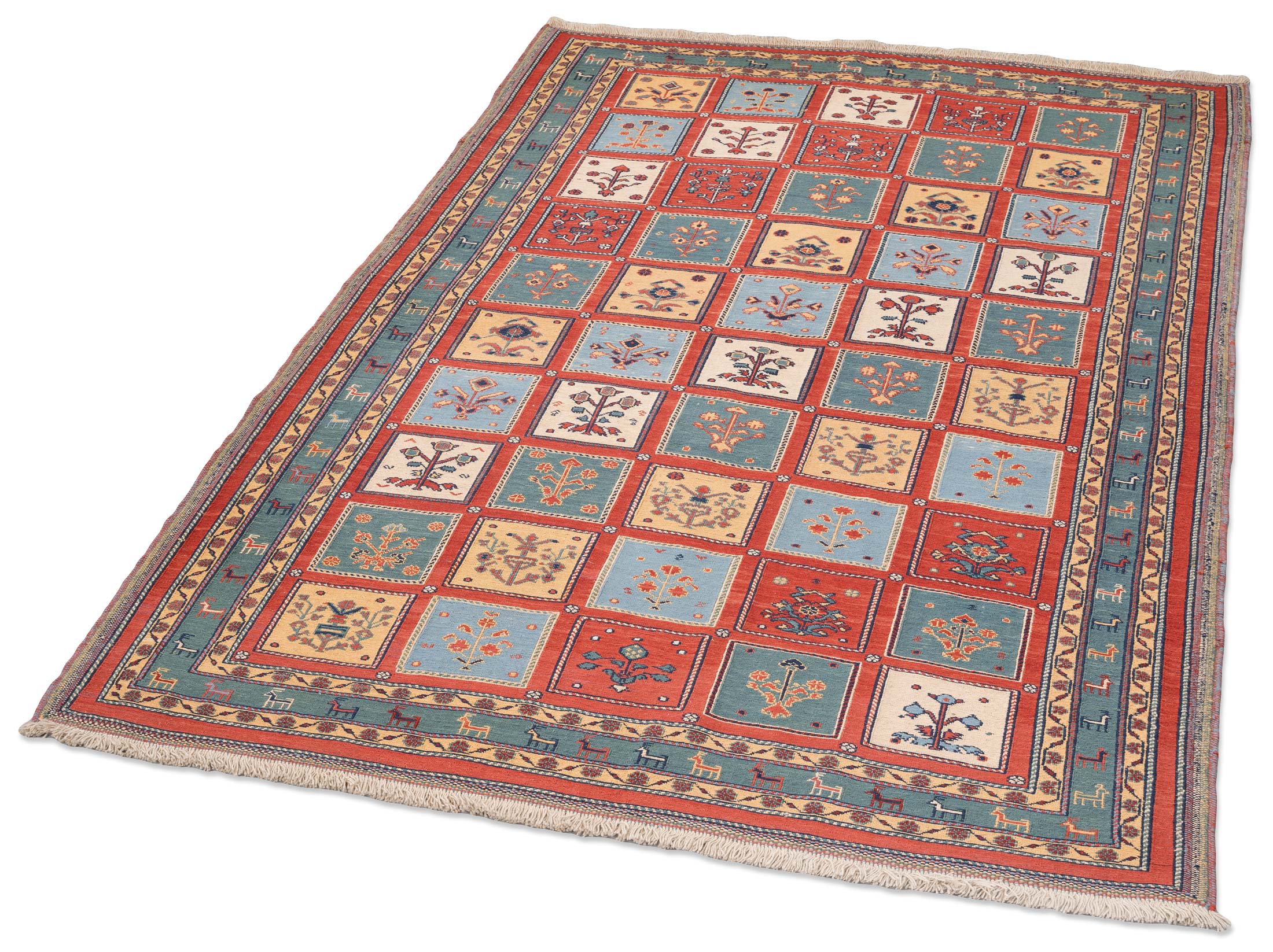 Diese kunstvollen und besonders zeitaufwendigen Webarbeiten gehören ebenfalls zur Familie der Kelims. Sumack-Arbeiten werden von Jahr zu Jahr seltener und heute eigentlich kaum noch neu angefertigt. Diese Lücke füllt unsere Eigenproduktion, der „Afschar-Tabii“.