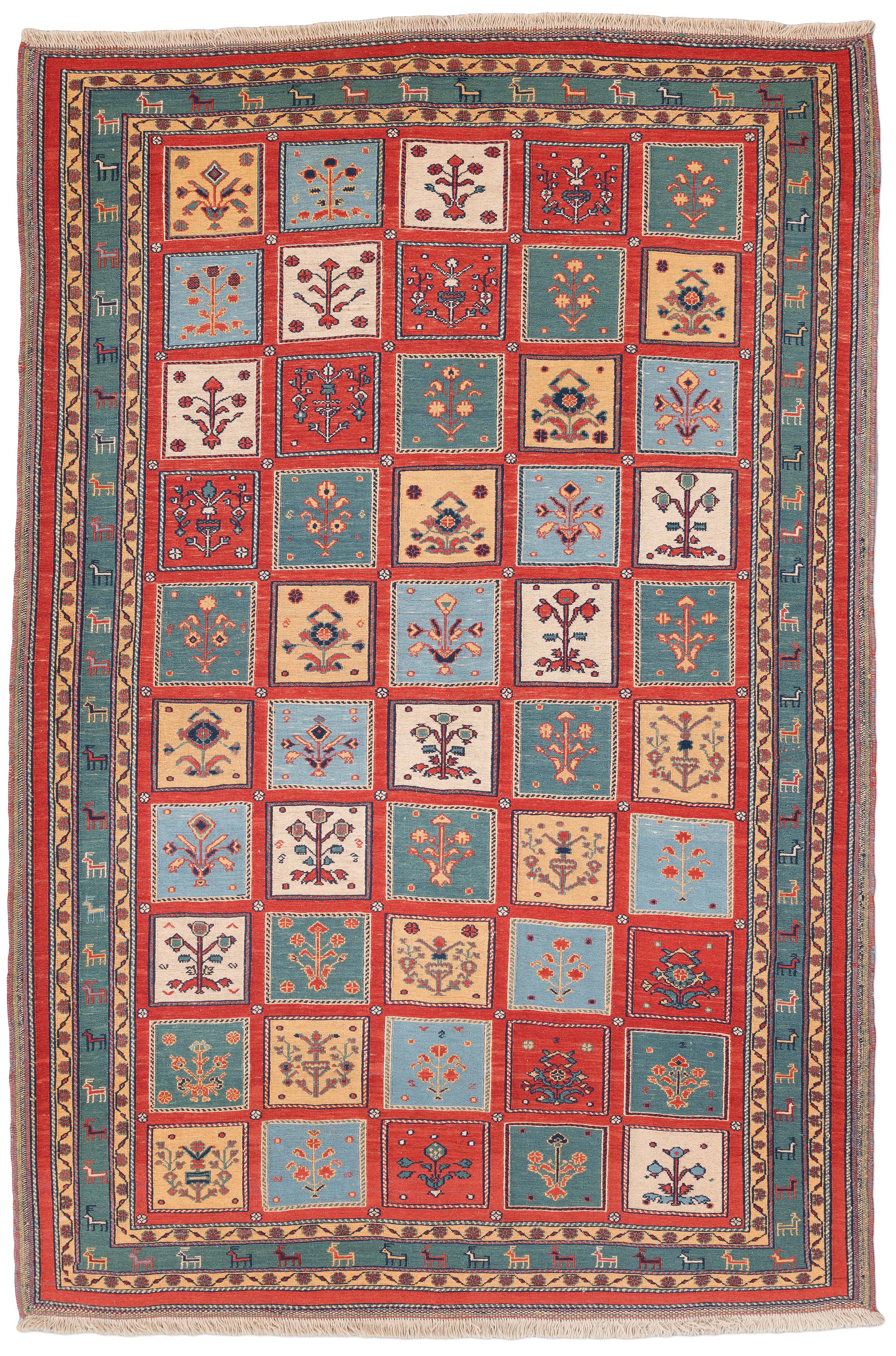 Ein weiteres Zeichen für die hohe Langlebigkeit des Afschar-Tabii ist die Existenz vieler wertvoller antiker Sumack-Kelims, die über 100 Jahre alt sind. Beachten Sie bitte, dass gewebte Kelims, die weithin verbreitet sind, nichts mit diesen aufwändigen Sumack-Kelims zu tun haben. Die gewebten Kelims sind einfacher herzustellen und erfordern nur einen Bruchteil der Arbeitszeit.