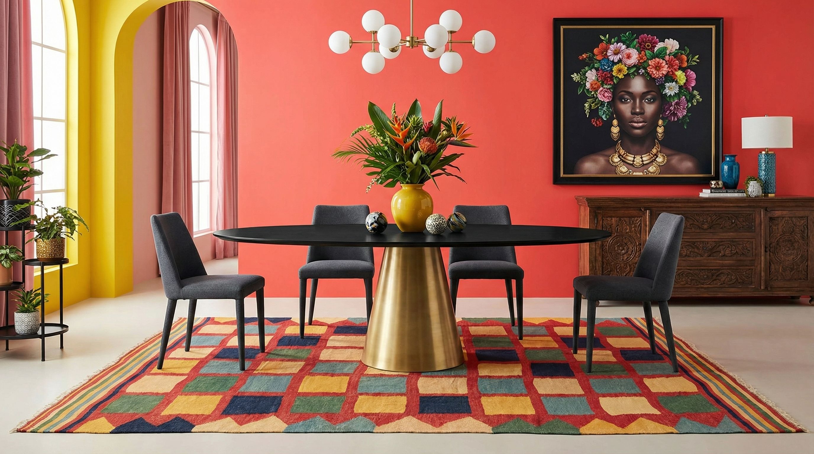 Hier präsentieren wir einen handgewebten Afschar-Kamo Kelim aus Persien. Die Hauptfarbe dieses einzigartigen Stücks ist ein lebhaftes Rostrot, das die Basis für die geometrischen Muster bildet. Begleitet wird es von einem sanften Olivgrün, einem warmen Senfgelb und einem tiefen Marineblau. Diese Farben sind in einem klaren, rasterartigen Design angeordnet, das den traditionellen Nomadenstil widerspiegelt. Die natürliche Farbgebung wird durch die Verwendung von pflanzlichen Farbstoffen und ...mehr Beschreibung
