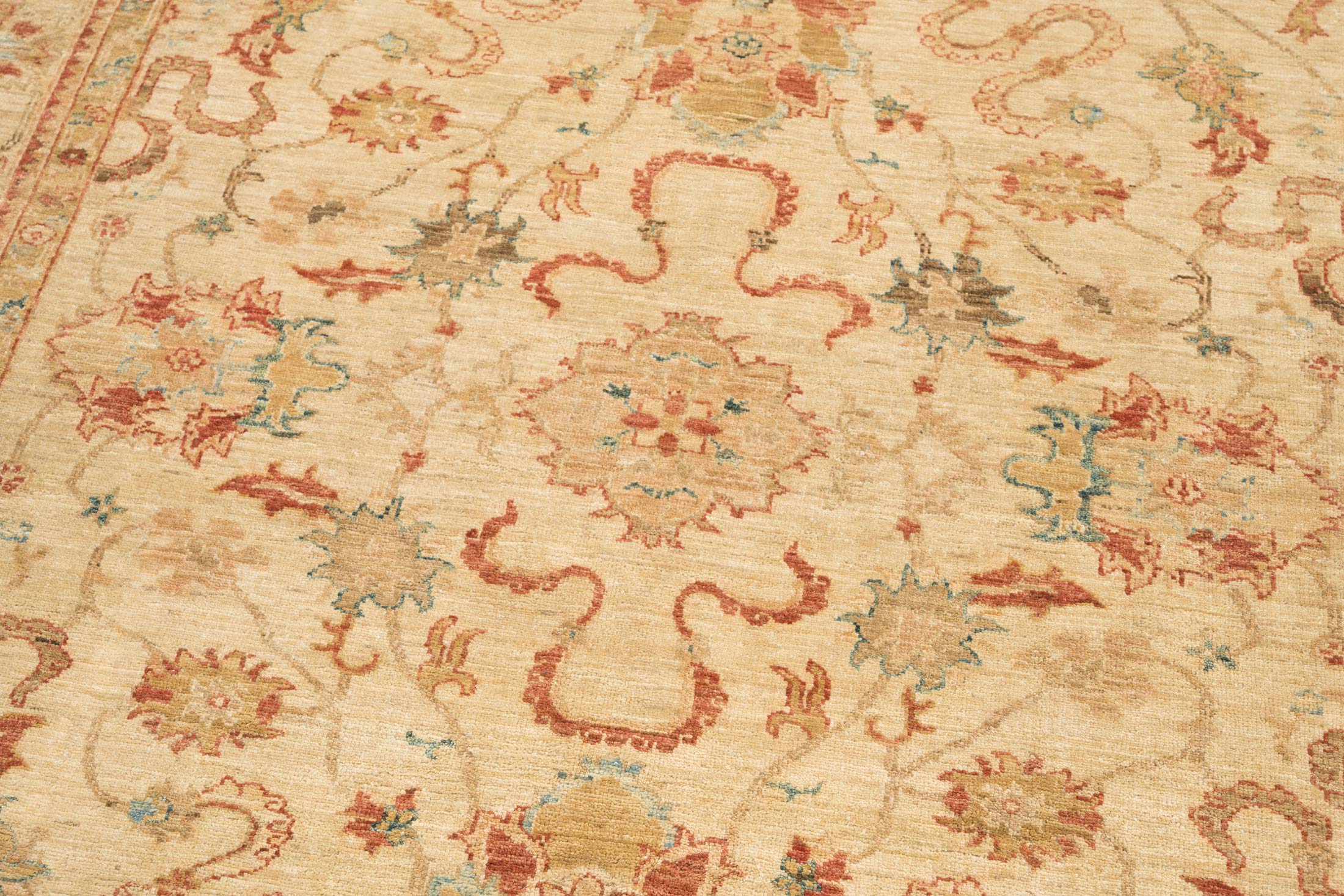 Leider gibt es auf dem heutigen Teppichmarkt eine Vielzahl minderwertiger "Ziegler"-Teppiche, die nur darauf abzielen, den billigsten Preis anzubieten. Doch wir halten an der Tradition der erstklassigen Qualität fest und bieten Ihnen nur Teppiche, die mit größter Sorgfalt und Leidenschaft in Afghanistan gefertigt werden. Jeder unserer Ziegler-Teppiche erfüllt höchste Qualitätsstandards und wird mit handversponnener Wolle und natürlichen Farbstoffen hergestellt. Wir legen großen Wert auf die Erhaltung der Authentizität und des Erbes dieser erstaunlichen Teppiche.