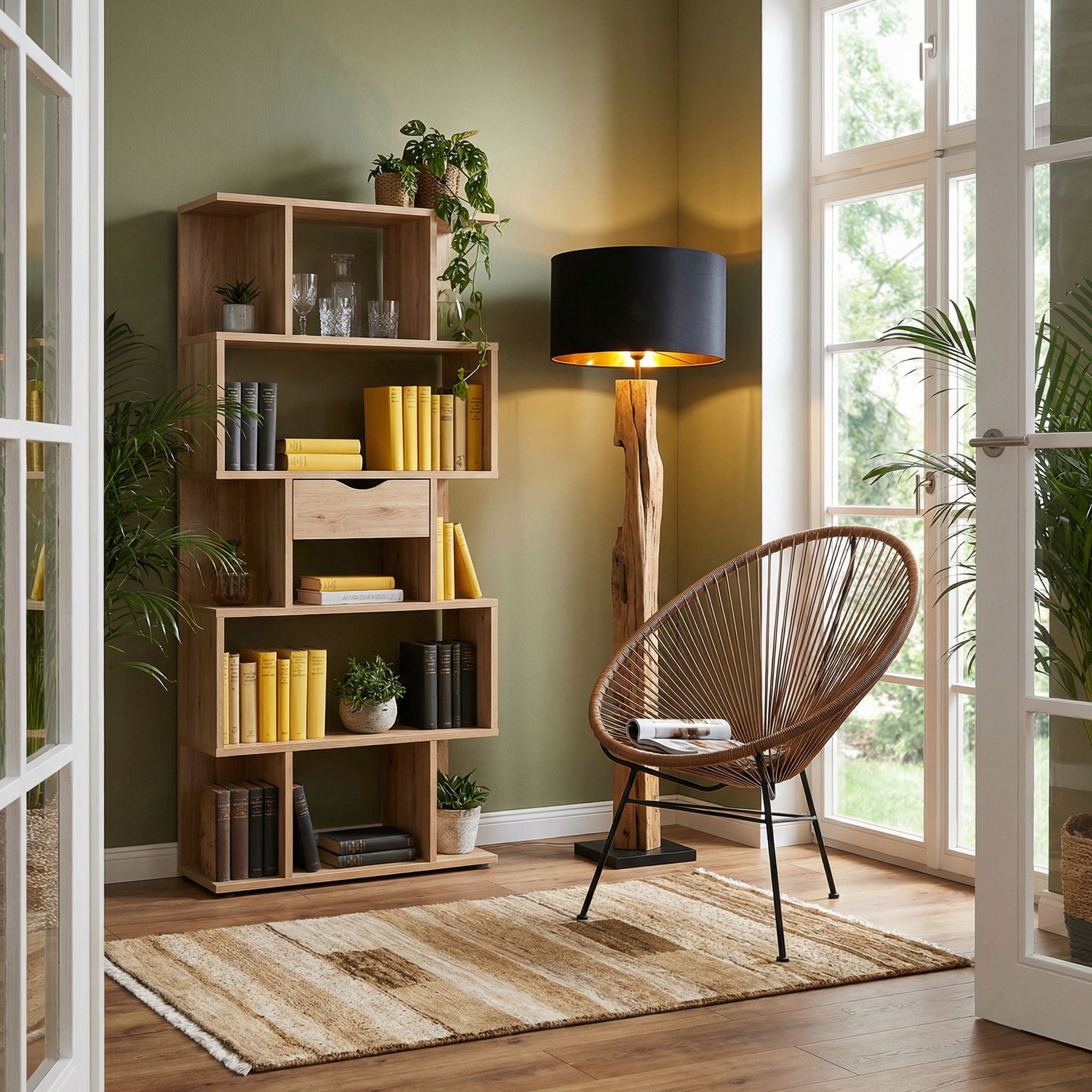 Der Boho-Style lebt von Unperfektheit, Natürlichkeit und einem entspannten Vibe, weshalb die lebendige Struktur der handversponnenen Wolle hier perfekt passt. Die künstlerische Freiheit der Knüpfer, die ohne starre Vorlage arbeiten, spiegelt den individuellen und unkonventionellen Geist des Bohème-Wohnens wider. In Kombination mit Rattan, vielen Pflanzen und weichen Textilien erdet dieser Teppich den Raum durch seine warmen Naturfarben und seine griffige Haptik. Er ist ein authentisches Original, das als ruhiger Gegenpol zu den oft bunten und eklektischen Accessoires des Boho-Stils fungiert.