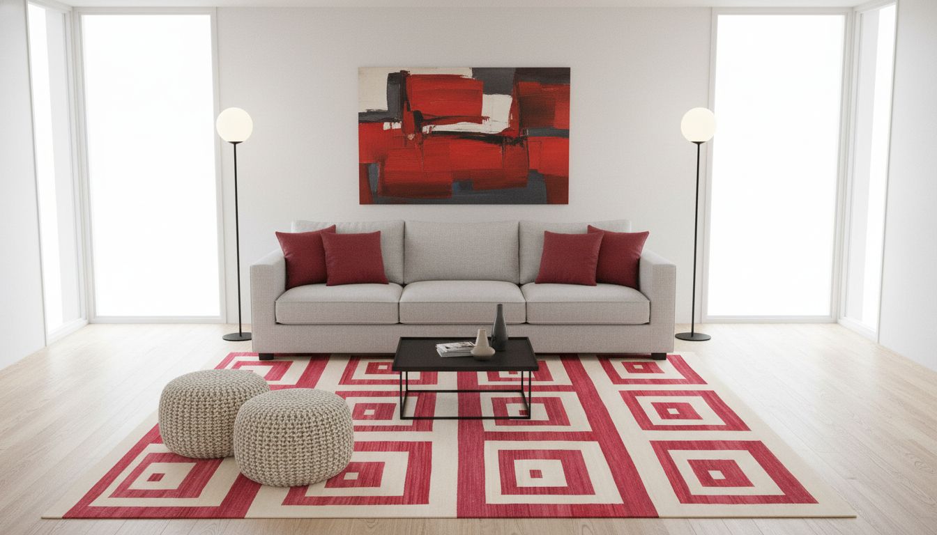 Dieser wunderschöne Kelim aus Afghanistan, bekannt als Tavis, besticht durch seine harmonische Farbgebung und das moderne Design. Die Hauptfarbe ist ein kräftiges Rot, das durch die Verwendung von Naturfarben eine besondere Tiefe erhält. Begleitet wird es von einem sanften Beige, das den Kontrast verstärkt und dem Teppich eine zeitlose Eleganz verleiht. Diese beiden Farben bilden ein auffälliges geometrisches Muster aus ineinander verschachtelten Quadraten, das an die Werke von Piet ...mehr Beschreibung