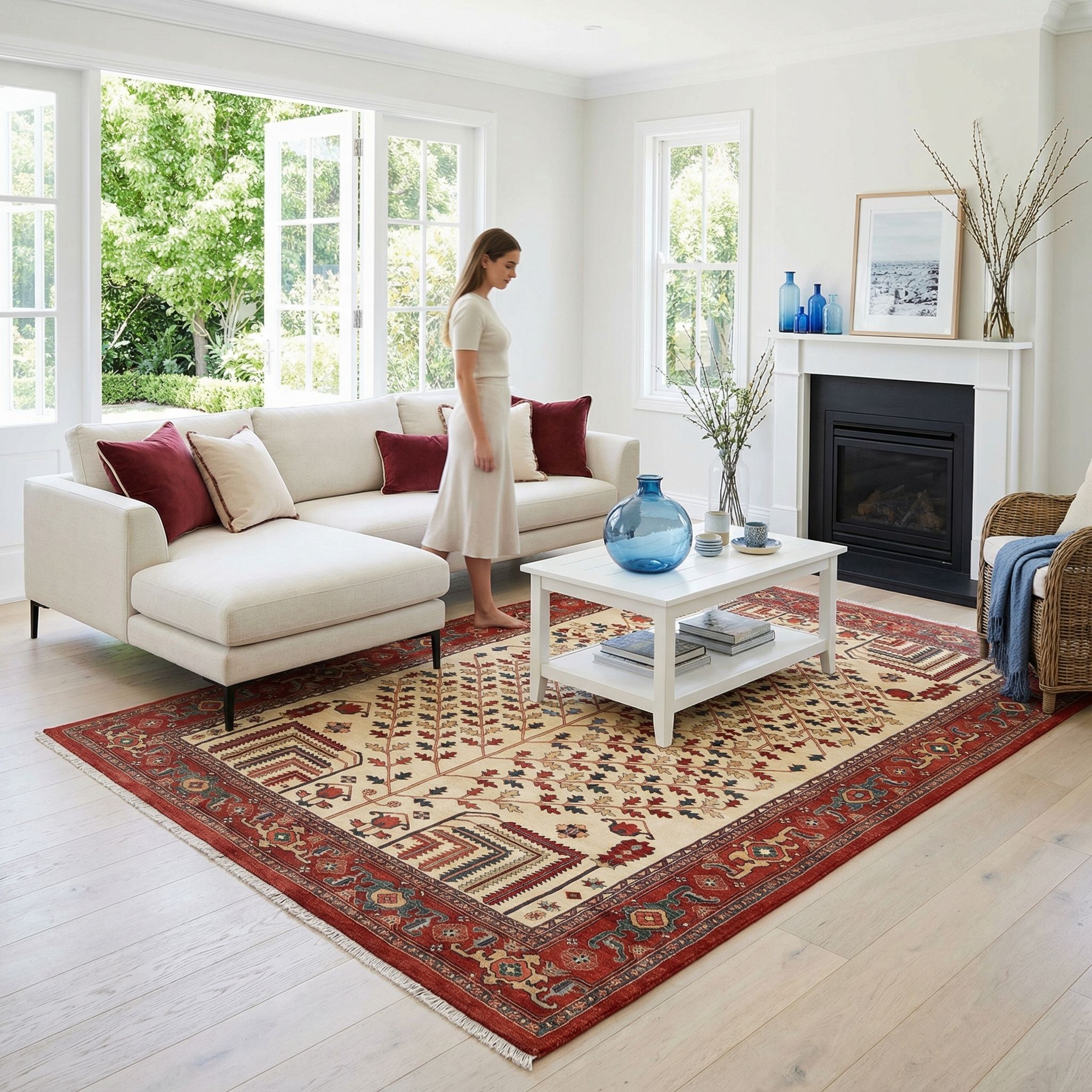 Unsere handgeknüpften Teppiche sind reine Handarbeit aus erlesenen Naturmaterialien. Echte Knoten sowie Schuss- und Kettfäden verleihen ihnen außergewöhnliche Langlebigkeit, Tiefe und bleibenden Wert - jeder Knoten ein Ausdruck echter Handwerkskunst. Handgefertigt und komplett ohne Kleber - für eine authentische, langlebige Qualität.Handgeknüpfte Teppiche - ob klassische Orientteppiche oder moderne Designs - lassen sich fachgerecht waschen, sind für den täglichen Gebrauch ...