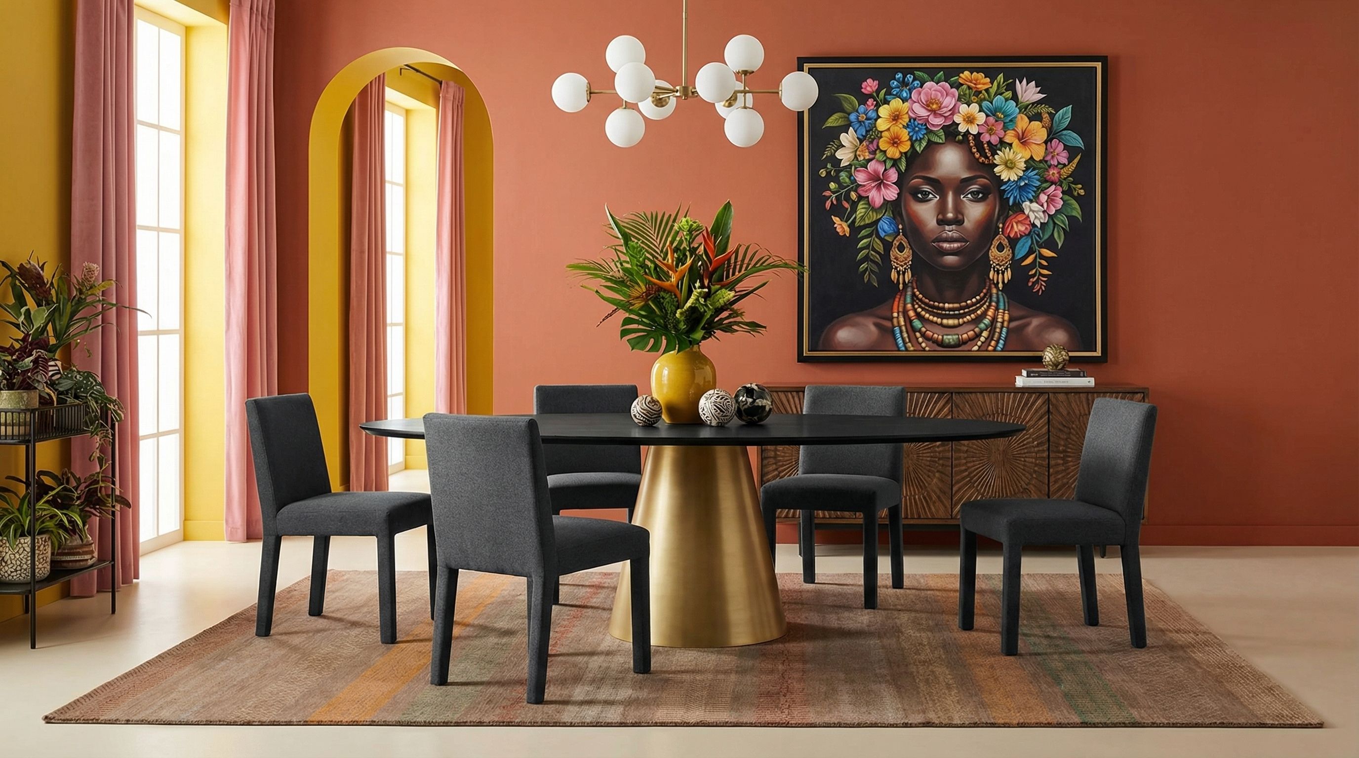 Als bewusster Stilbruch eingesetzt, entfaltet dieser Teppich im Industrial-Style eine faszinierende Wirkung, indem er die Kühle von Beton, Stahl und offenem Mauerwerk durchbricht. Die organische Haptik der handversponnenen Schafwolle und die warmen Erdfarben schaffen eine wohnliche Insel inmitten der rauen Loft-Atmosphäre. Die sichtbare Handwerkskunst und die ehrlichen Materialien korrespondieren auf subtile Weise mit dem "Unfinished-Look" des Industriestils, fügen jedoch eine Ebene von Luxus hinzu. So wird der Teppich zum verbindenden Element, das dem Raum seine Strenge nimmt und ihn einladend und kuratiert wirken lässt.