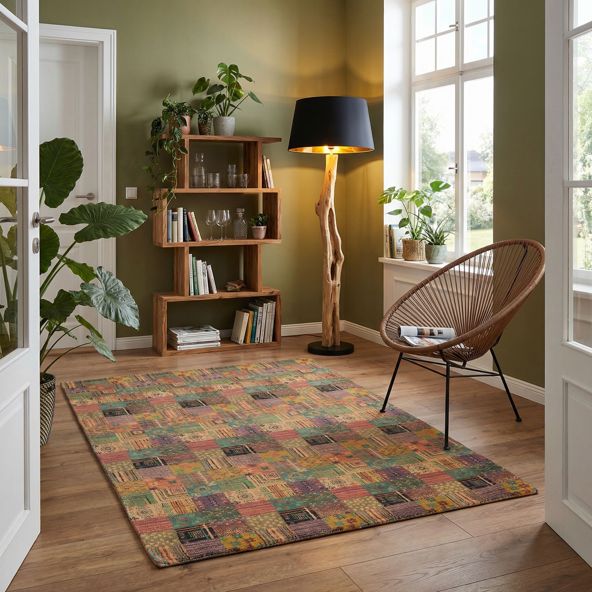 Für den unkonventionellen und kreativen Boho-Style ist dieser Teppich wie geschaffen, da sein innovatives Patchwork-Design aus neu angeordneten Motiven pure Lebensfreude und Individualität ausstrahlt. Die Vielfalt der Naturfarben und die lebendige Struktur der handversponnenen Schafwolle laden dazu ein, ihn mit bunten Kissen, Makramee und vielen Pflanzen zu kombinieren. Als echtes Original aus dem Hause Mesgarzadeh bietet er genau jene Einzigartigkeit und den charmanten „Imperfect-Look“ durch sichtbare Farbunterschiede, den Boho-Liebhaber so sehr schätzen. Dieses prämierte Stück verleiht Ihrem Zuhause sofort eine gemütliche, künstlerische Aura, die zum Entspannen und Träumen einlädt.
