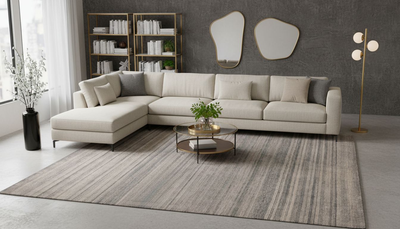 Dieser exklusive Zarubi-Teppich aus Afghanistan präsentiert sich in einer harmonischen Farbpalette, dominiert von einem eleganten Grauton, der durch subtile Schattierungen von Beige und einem Hauch von sanftem Braun ergänzt wird. Diese Farben verleihen dem Teppich eine zeitlose Ästhetik und fügen sich nahtlos in verschiedene Einrichtungsstile ein. Die Musterung ist dezent und linear, was dem Teppich einen modernen und zugleich klassischen Charakter verleiht. Hergestellt aus handversponnener ...mehr Beschreibung