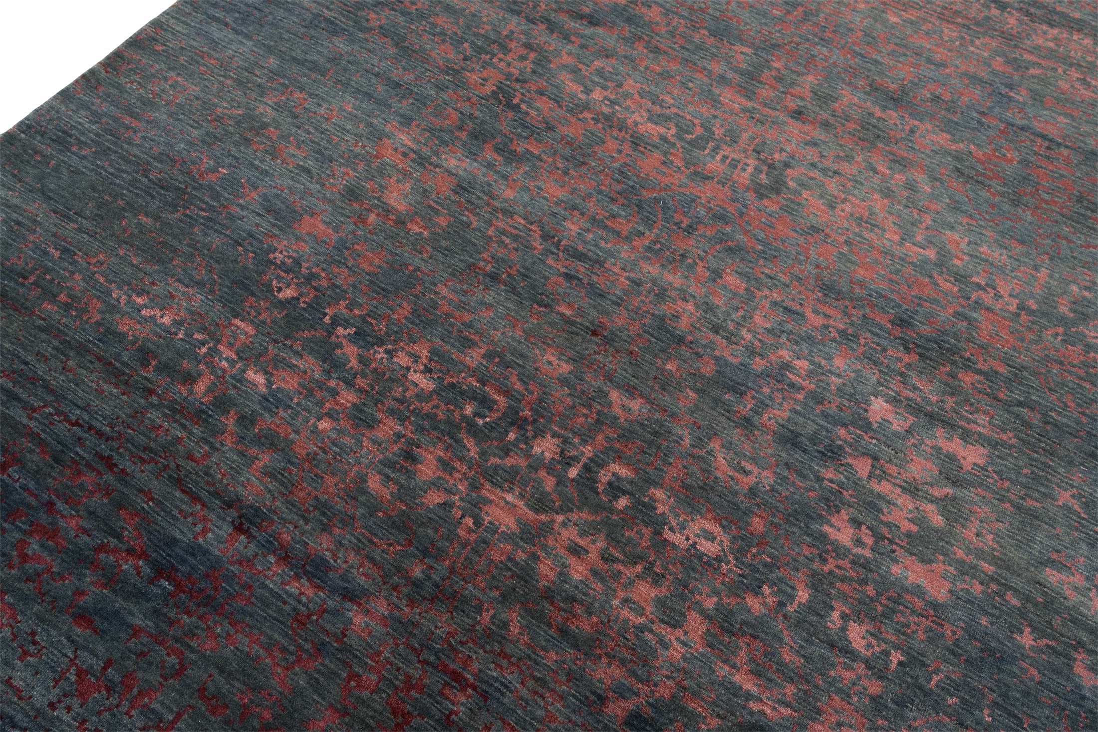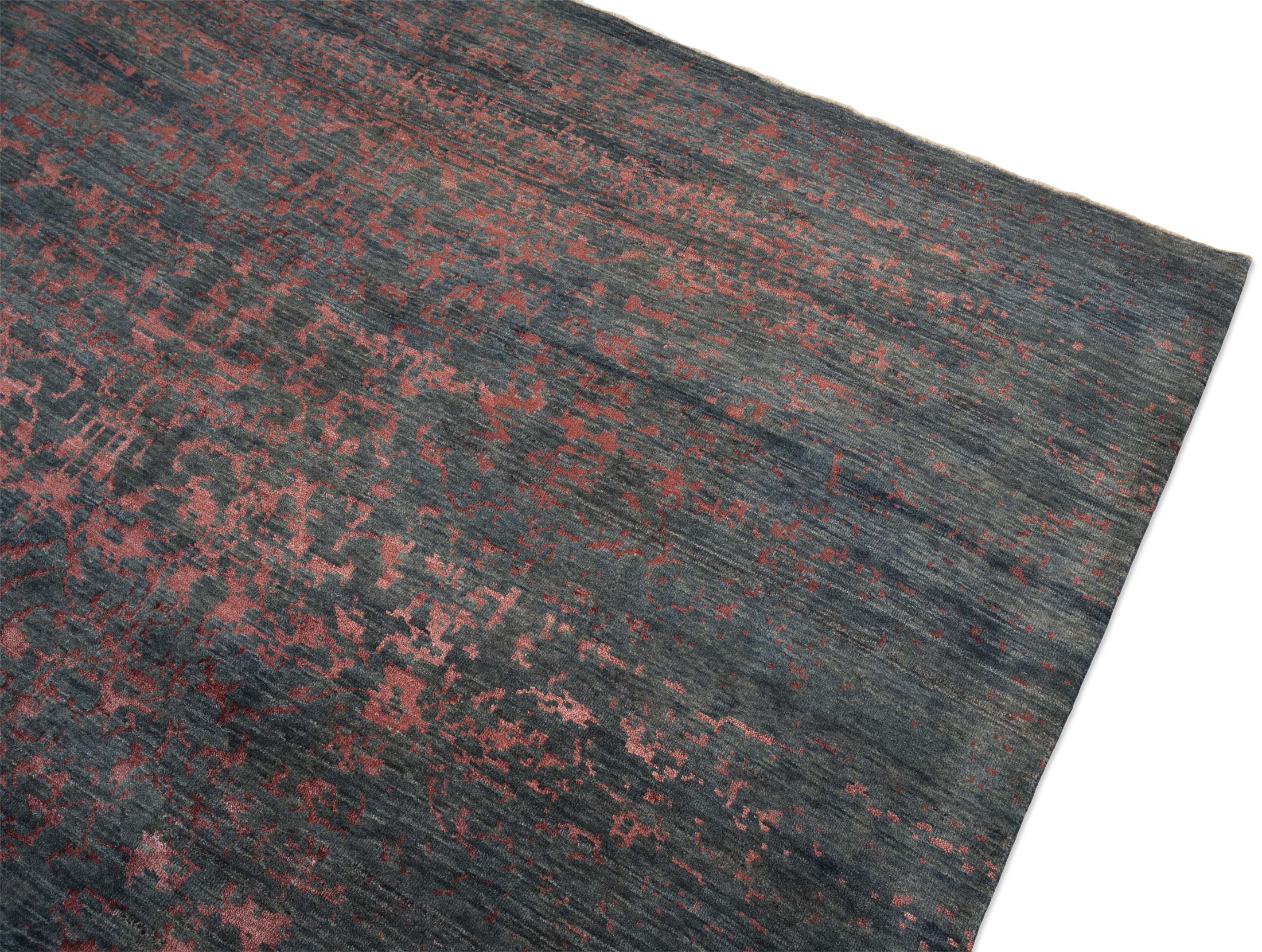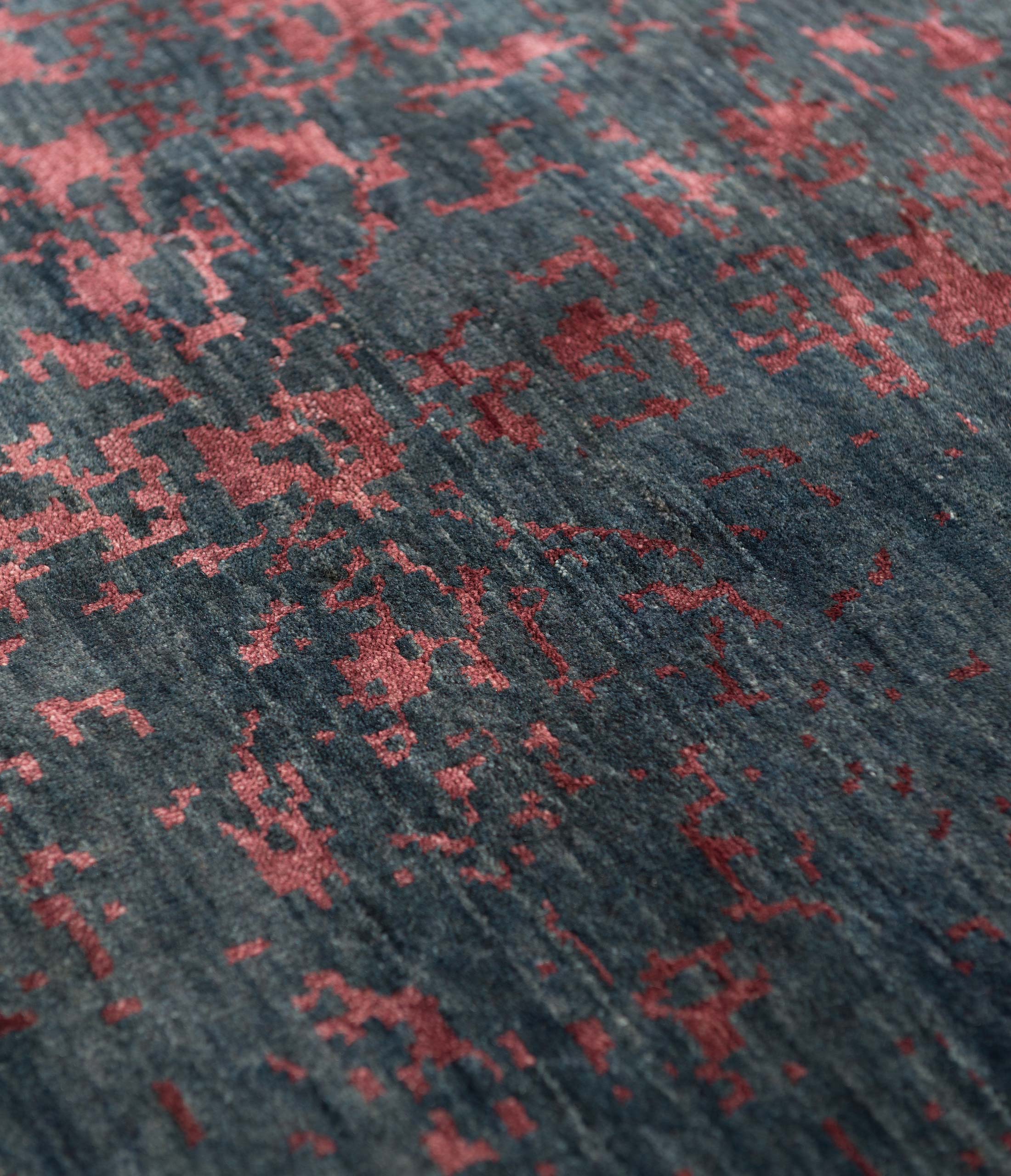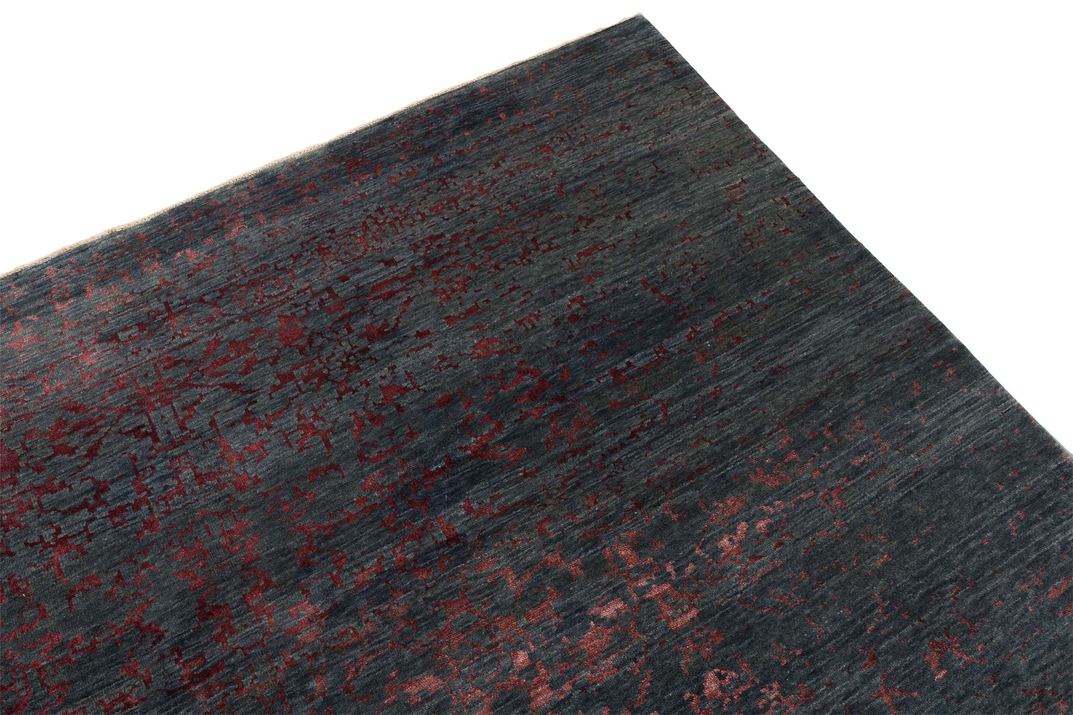 Dieser handgeknüpfte Designerteppich aus der Eterno-Kollektion besticht durch seine Hauptfarbe Dunkelgrau, die eine elegante Basis bildet. Ausgewogene Akzente in tiefem Rot verleihen dem Design einen Hauch von Wärme und Tiefe. Feine Nuancen in Dunkelblau ergänzen das harmonische Gesamtbild. Die Musterung kombiniert Retrodesign mit einem modernen Touch, der durch die erstklassige Bambusseide und handkardierte Schafwolle unterstützt wird. Dieser Teppich ist nicht nur ein stilvolles ...mehr Beschreibung