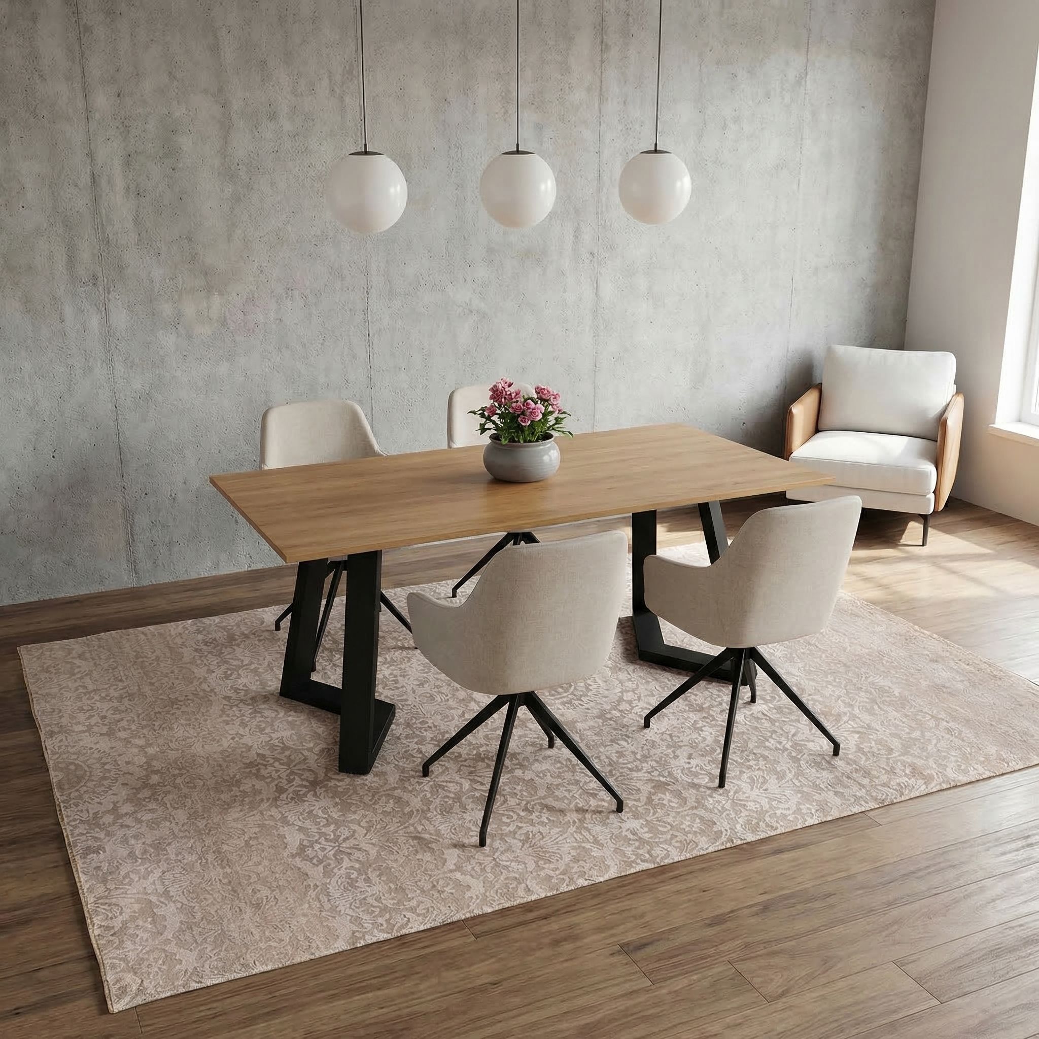 Der helle, natürliche Farbton und die Verwendung von erstklassiger Schafwolle machen diesen Teppich zu einem idealen Begleiter für den skandinavischen Wohnstil. Er bringt die notwendige Wärme und "Hygge" in den Raum, wobei die nachhaltige, CO2-neutrale Bambusseide den nordischen Anspruch an Umweltbewusstsein und Natürlichkeit unterstreicht. Das sanfte, unaufdringliche Design sorgt für eine ruhige und luftige Atmosphäre, die typisch für die nordische Leichtigkeit ist. Zudem harmoniert die hochwertige Materialstruktur wunderbar mit hellen Hölzern, Leinenstoffen und einer klaren Formsprache.