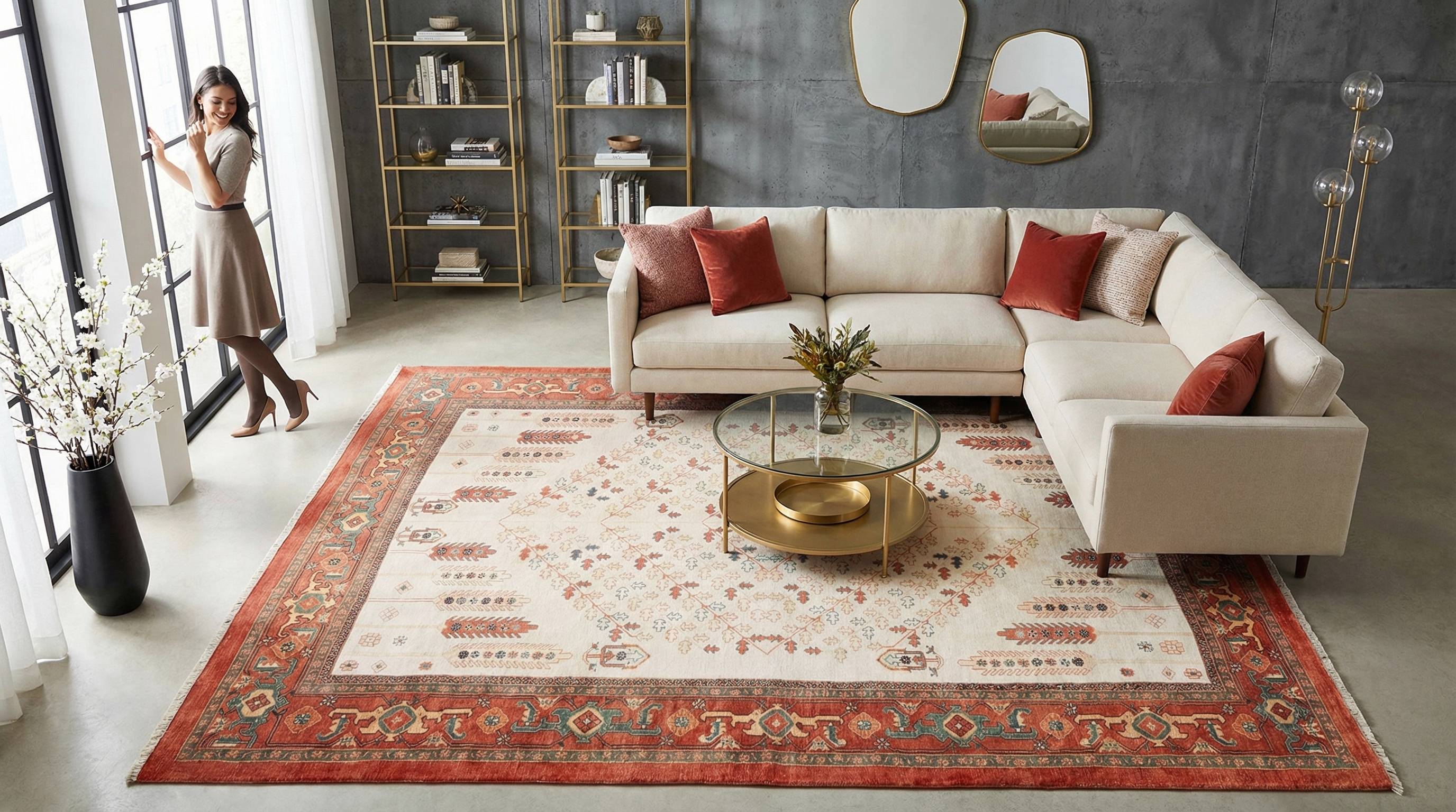 Hier präsentieren wir einen prachtvollen handgeknüpften Ghadimi-Teppich aus dem Hause Mesgarzadeh, der durch seine meisterhafte Knüpfkunst und die Verwendung von natürlichen Materialien besticht. Die Hauptfarbe dieses Teppichs ist ein warmes Ziegelrot, das den großzügigen Rahmen akzentuiert. Begleitet wird es von einem sanften Cremeweiß im Hintergrund, das die stilisierten Lebensbäume umgibt. Ergänzt wird die Farbpalette durch ein tiefes Petrol, das den geometrischen Mustern ...mehr Beschreibung