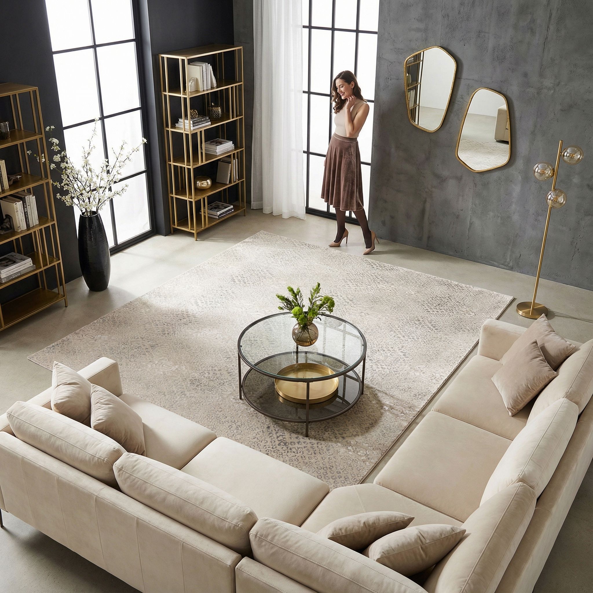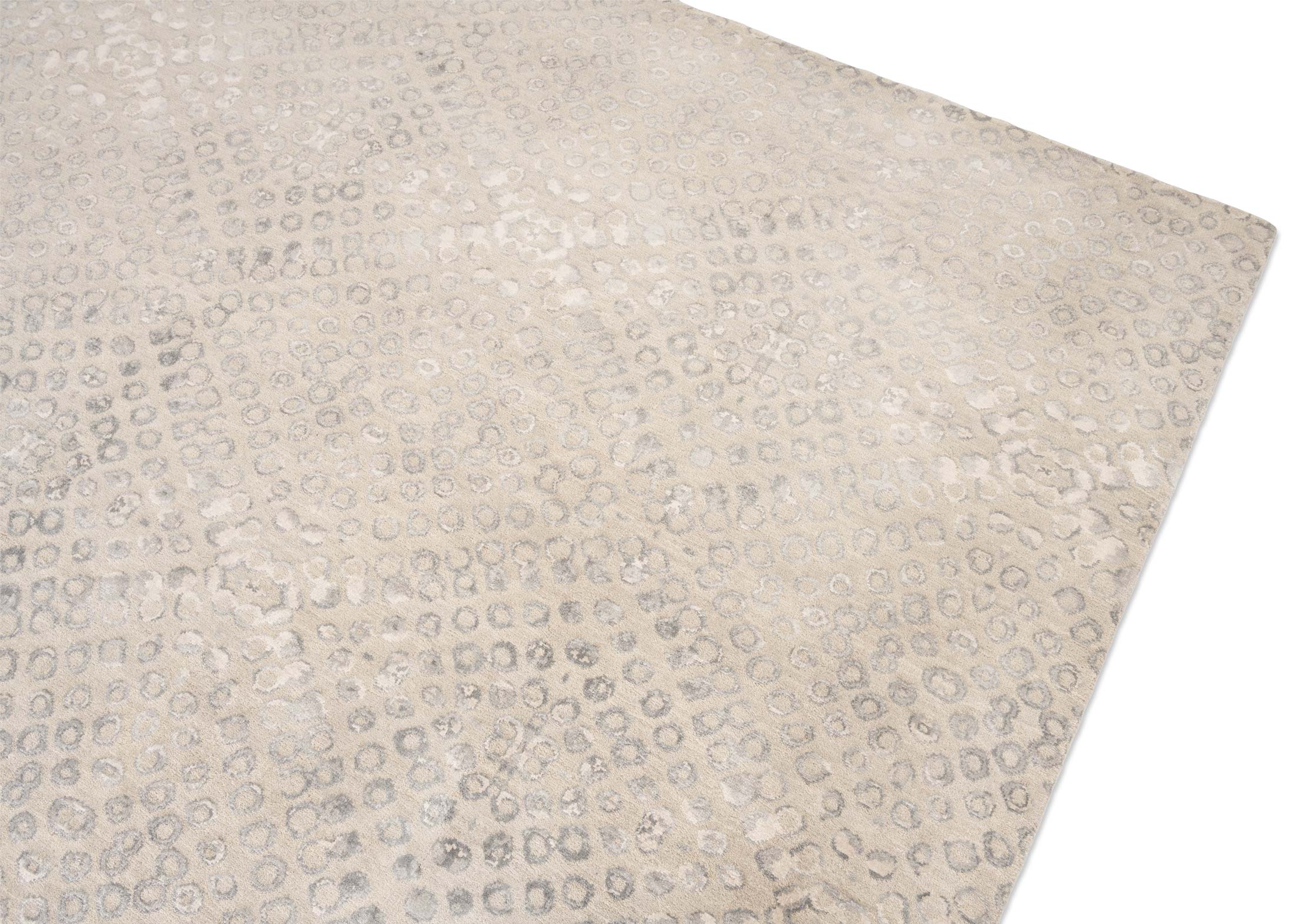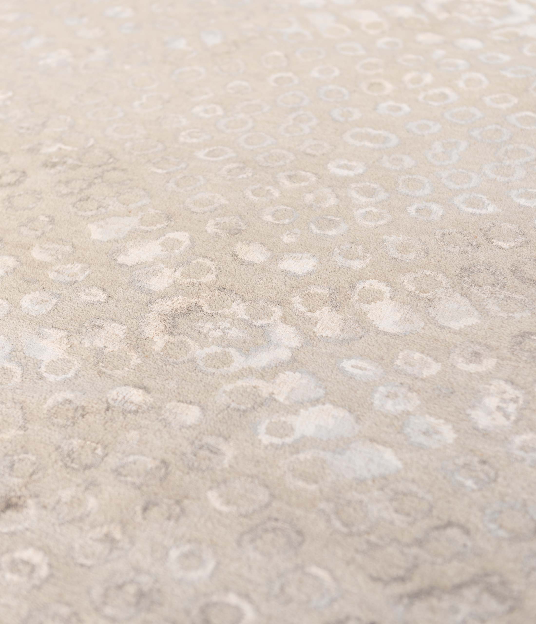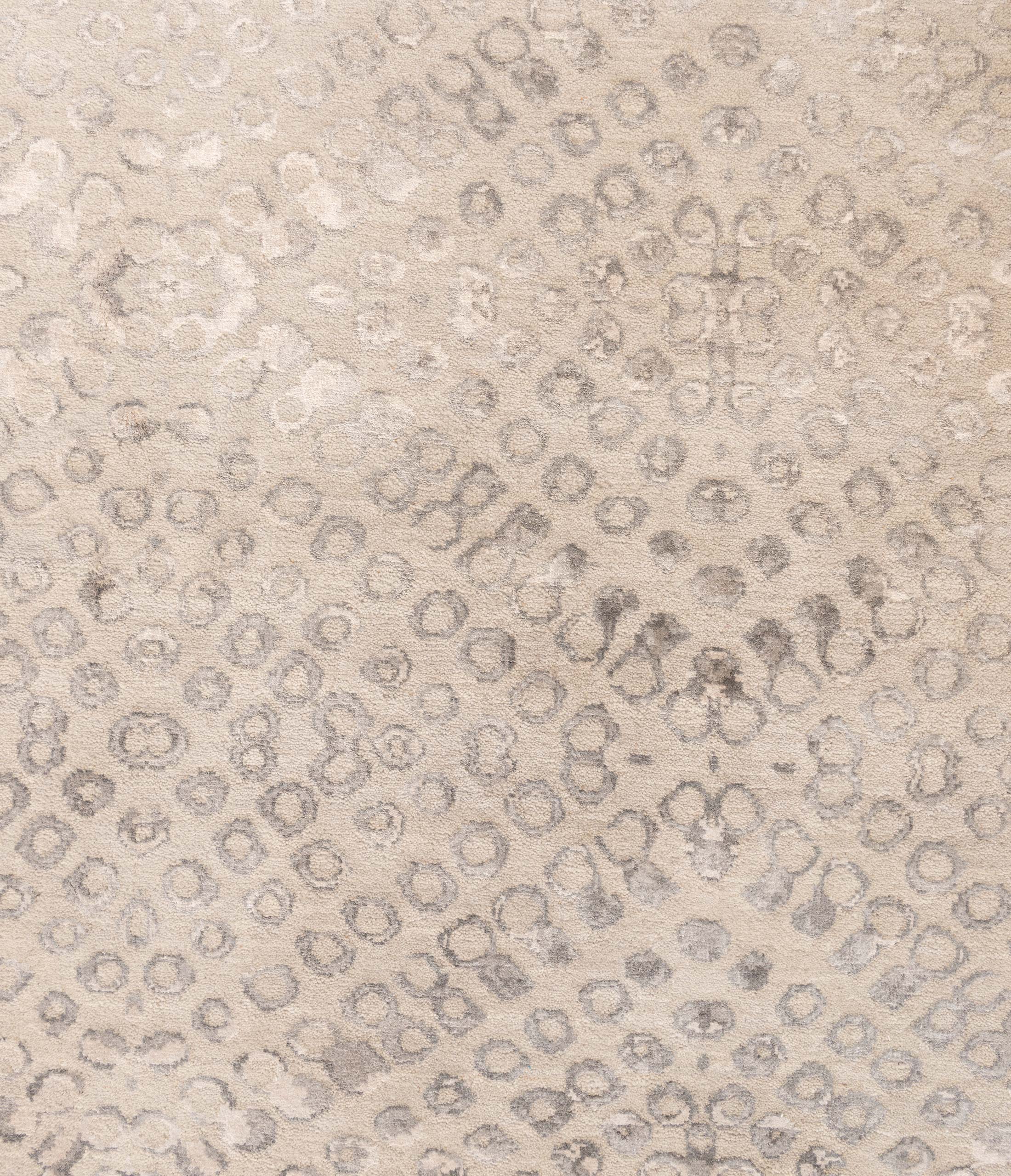 Dieser handgeknüpfte Designerteppich aus der Edition Eterno, beeindruckt mit einer Hauptfarbe in elegantem Beige. Diese wird durch schimmernde Akzente in Silber und zarten Grautönen ergänzt, die dem Teppich einen modernen, aber dennoch zeitlosen Look verleihen. Das Design zeigt ein filigranes, geometrisches Muster, das an klassische Ornamente erinnert und dem Raum Tiefe und Charakter verleiht.Hergestellt aus hochwertigster handgesponnener Schafwolle und erstklassiger Bambusseide, bietet ...