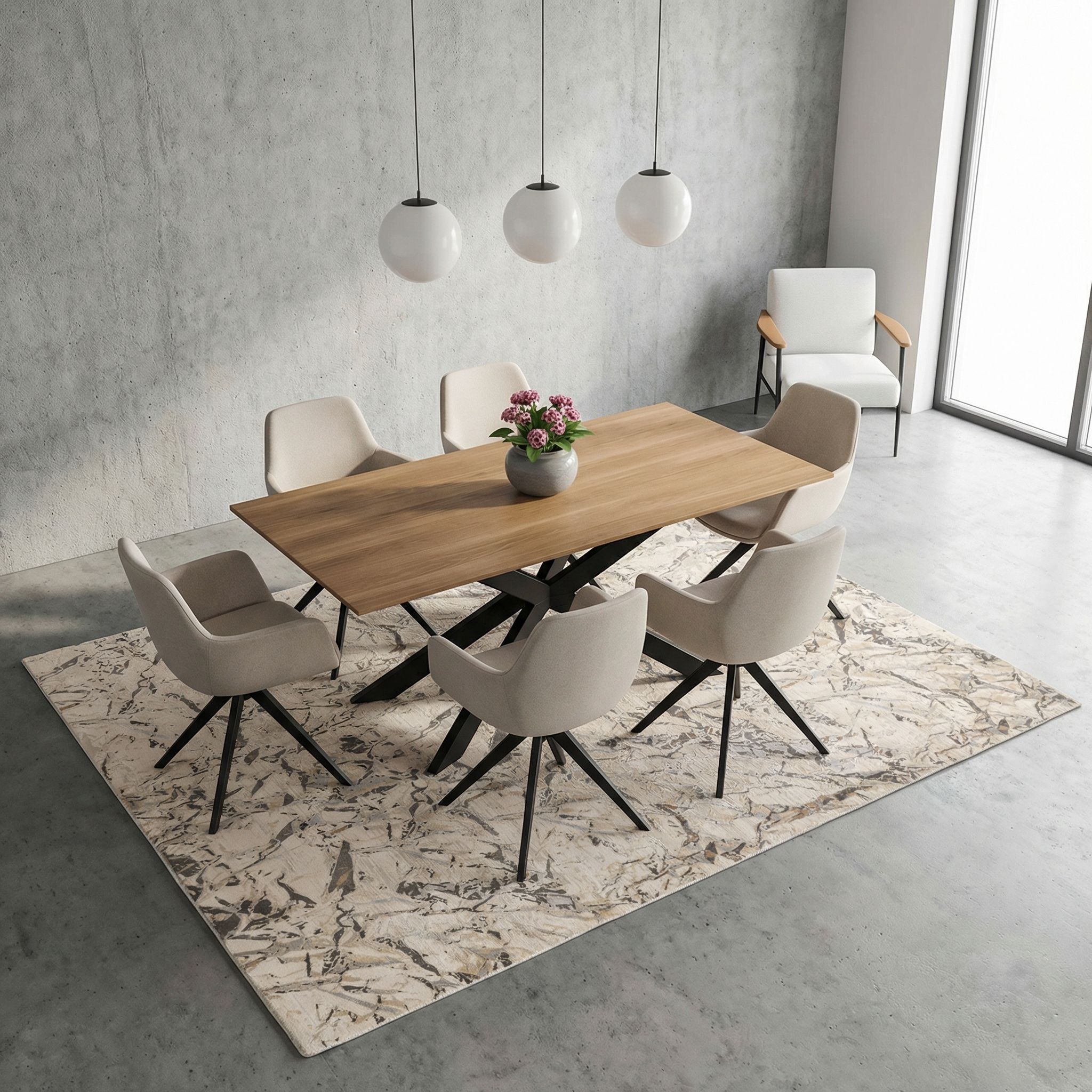 Dieser handgeknüpfte Designerteppich aus der Collection Eterno-Prime beeindruckt eine hochfeine Knüpfung und komplexe Musterung, welche an zerknittertes Papier erinnert. Die Hauptfarbe ist ein sanftes Beige, ergänzt durch elegante Akzente in Grau und Braun. Das Design zeigt eine abstrakte, marmorierte Musterung, die dem Teppich eine moderne, kunstvolle Ausstrahlung verleiht. Gefertigt aus handgesponnener Schafwolle und über 50 % Naturseide, bietet er eine luxuriöse Textur und einen sanften ...mehr Beschreibung