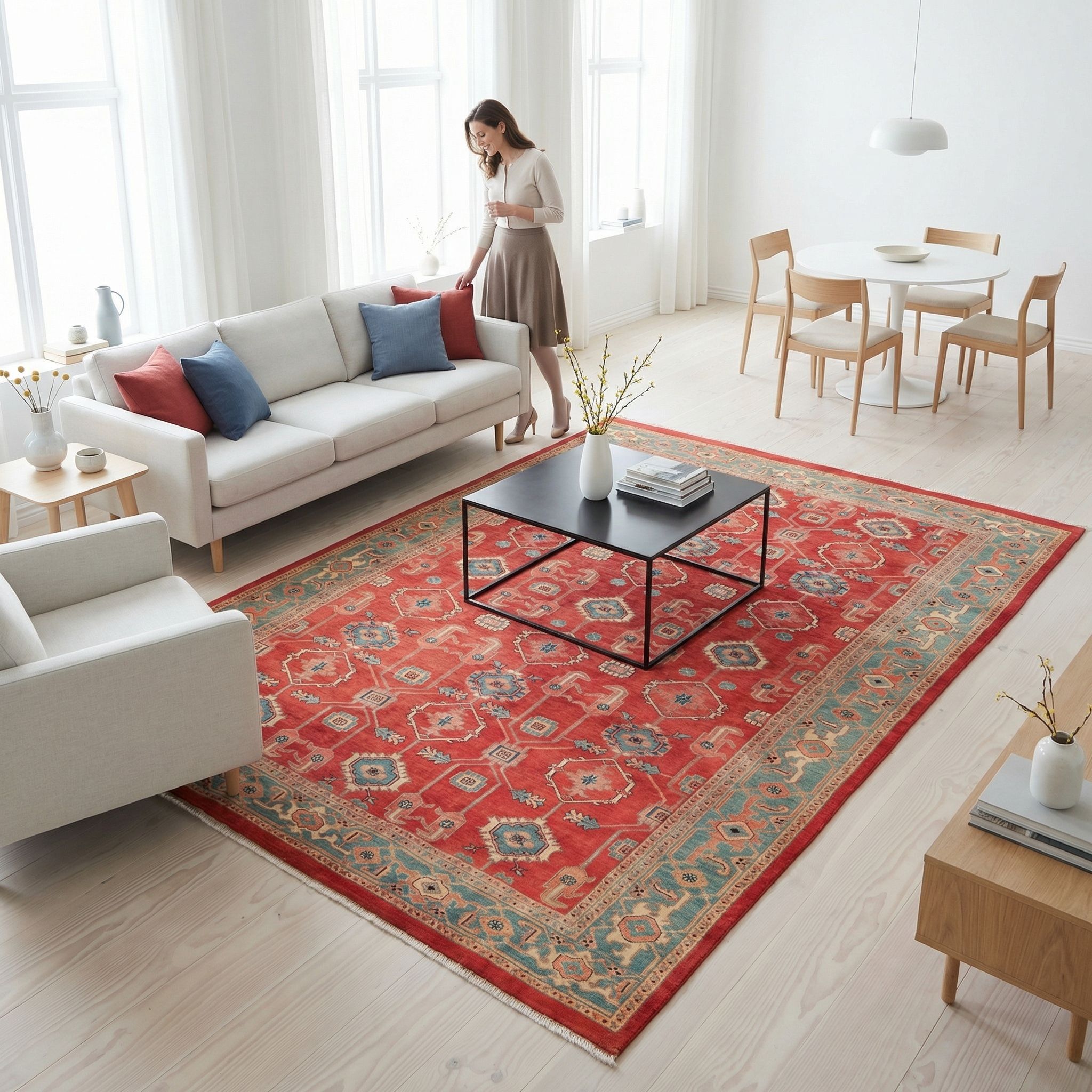 Unsere handgeknüpften Teppiche sind reine Handarbeit aus erlesenen Naturmaterialien. Echte Knoten sowie Schuss- und Kettfäden verleihen ihnen außergewöhnliche Langlebigkeit, Tiefe und bleibenden Wert - jeder Knoten ein Ausdruck echter Handwerkskunst. Handgefertigt und komplett ohne Kleber - für eine authentische, langlebige Qualität.Handgeknüpfte Teppiche - ob klassische Orientteppiche oder moderne Designs - lassen sich fachgerecht waschen, sind für den täglichen Gebrauch ...