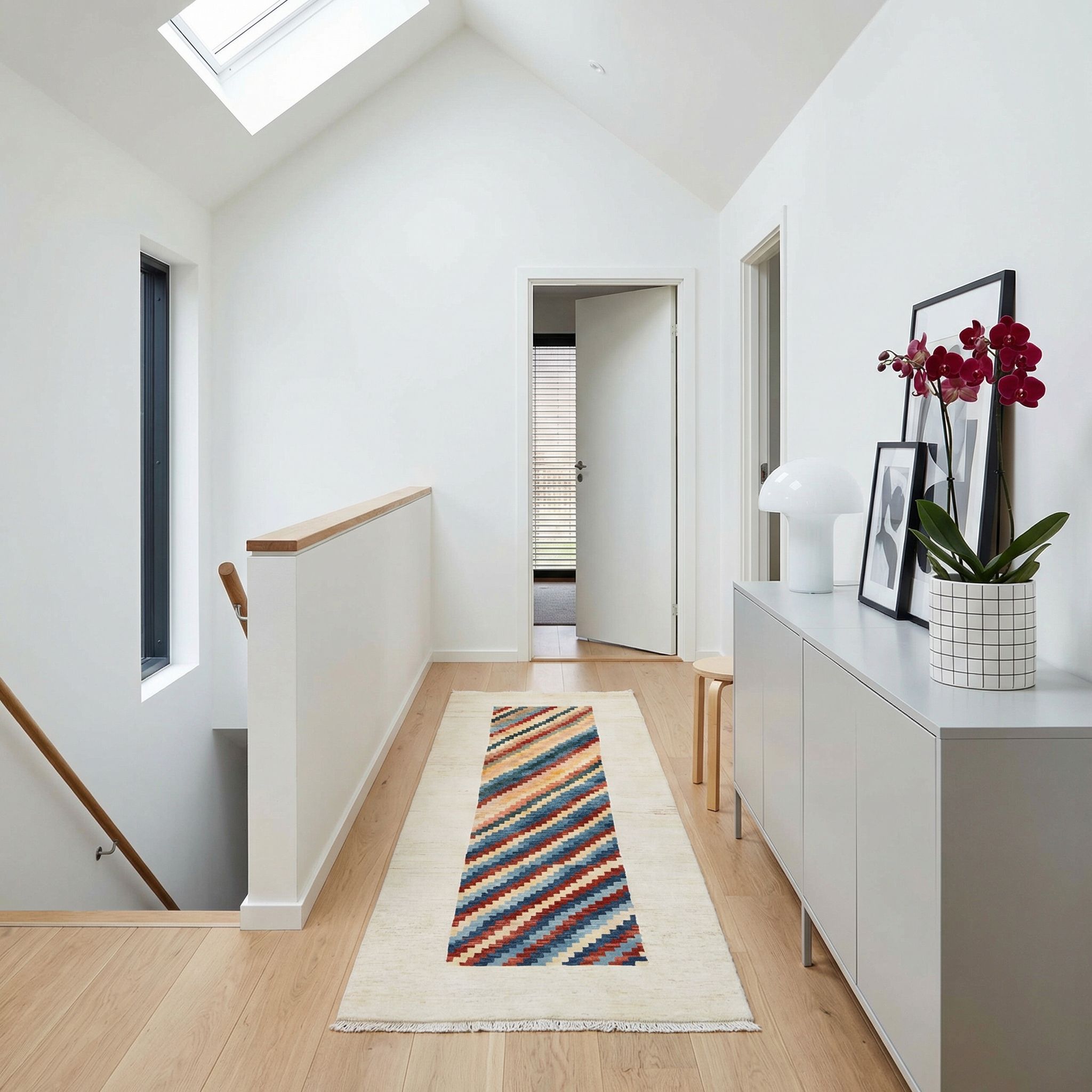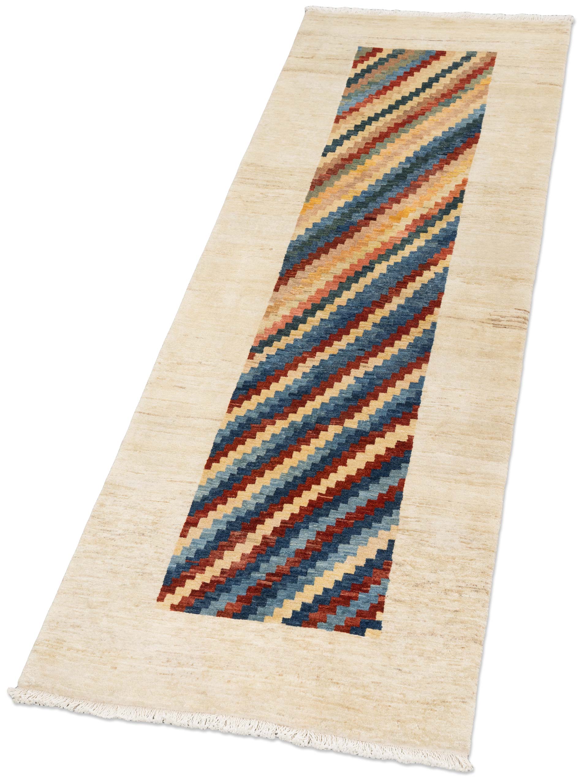 Entdecken Sie den außergewöhnlichen Bidjar-Novum, einen handgeknüpften Teppich aus Persien, der Stil und Tradition vereint. Dieses Meisterwerk besticht durch sein einzigartiges Sonderformat und die exquisite handversponnene Schafwolle, gefärbt mit natürlichen Farbstoffen. Mit seinem auffallenden Muster aus lebendigen Farben wie kräftigem Blau, warmem Rot, leuchtendem Gelb und sattem Grün, bringt er unvergleichliche Eleganz in jeden Raum. Dank der sehr feinen Knüpfung und einer Dichte von ca. 160.000 Knoten pro qm ist der Bidjar-Novum viermal feiner als herkömmliche Gabbeh-Teppiche. Diese bemerkenswerte Handwerkskunst garantiert nicht nur eine luxuriöse Haptik, sondern auch außergewöhnliche Haltbarkeit. Der Bidjar-Novum ist mehr als ein Teppich; er ist ein Kunstwerk, das Ihr Zuhause mit zeitloser Schönheit bereichert. Investieren Sie in Exzellenz und verleihen Sie Ihrem Interieur einen Hauch von persischer Opulenz! ...