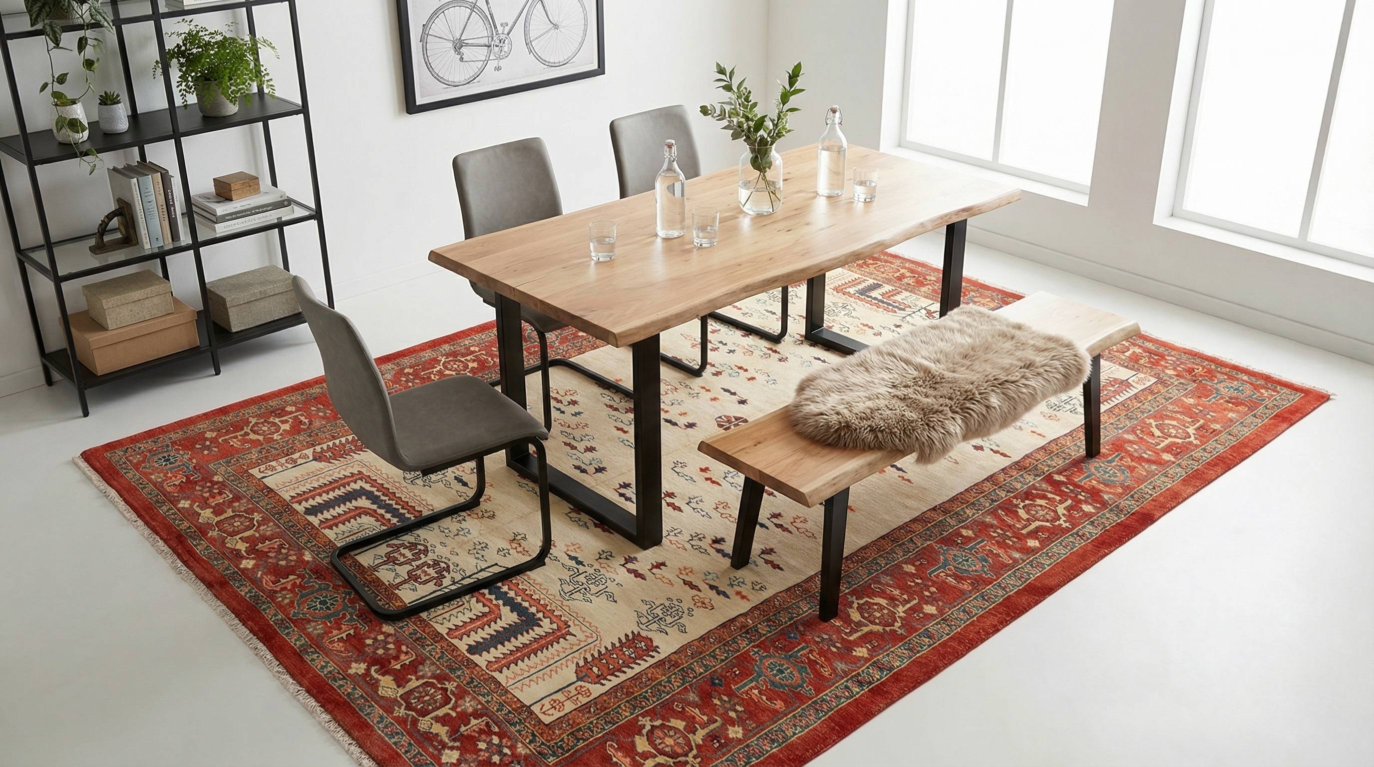 Als kontrastreiches Meisterstück verleiht dieser Teppich kühlen Lofts mit Sichtbeton und Metall die dringend benötigte Wärme und Wohnlichkeit. Die enorme Materialdichte von rund 9 kg Wolle pro Quadratmeter und die robuste Machart ohne Knüpfhaken halten der raueren Ästhetik des Industrial-Styles mühelos stand. Die lebendige Struktur der handversponnenen Wolle bildet einen faszinierenden Gegenpol zu glatten, kalten Oberflächen und bringt "Seele" in die Architektur. Mit diesem Ghadimi setzen Sie ein Zeichen für meisterhafte Qualität, die sich auch in einem urbanen, rohen Umfeld eindrucksvoll behauptet.