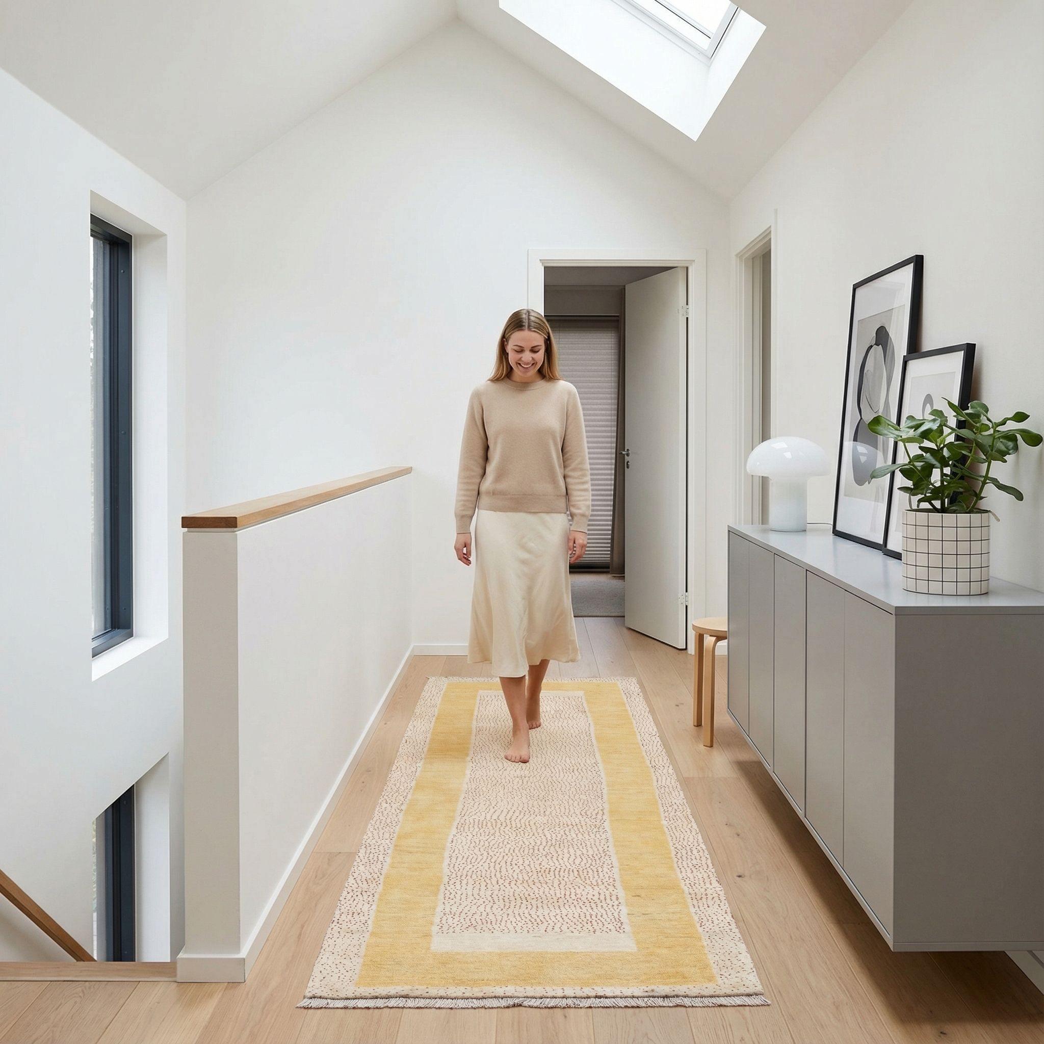 Unsere handgeknüpften Teppiche sind reine Handarbeit aus erlesenen Naturmaterialien. Echte Knoten sowie Schuss- und Kettfäden verleihen ihnen außergewöhnliche Langlebigkeit, Tiefe und bleibenden Wert - jeder Knoten ein Ausdruck echter Handwerkskunst. Handgefertigt und komplett ohne Kleber - für eine authentische, langlebige Qualität.