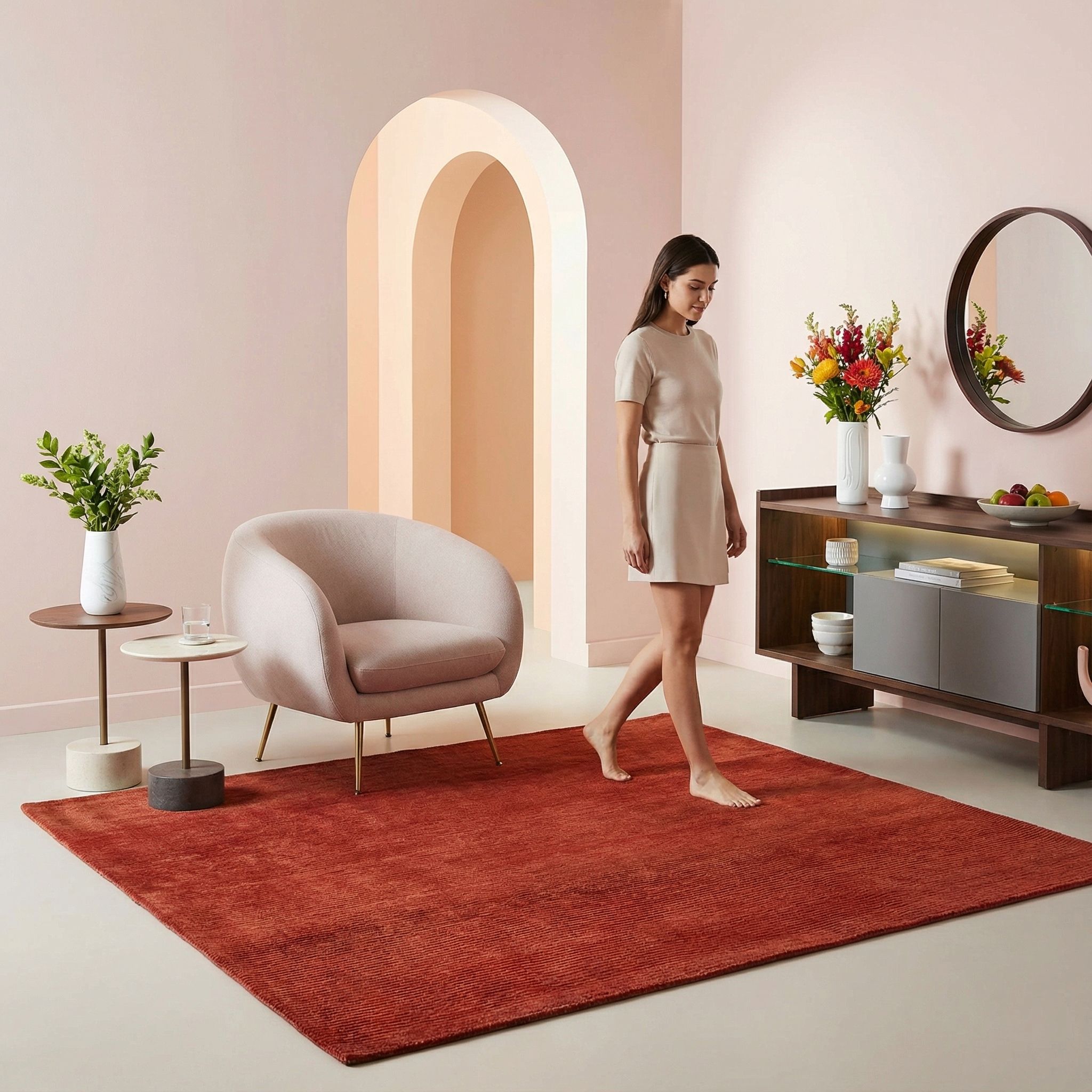 Dieser Teppich beweist eindrucksvoll, wie zeitlose Qualität und innovatives Design verschmelzen, und wird so zum idealen Anker für ein zeitgenössisches, cleanes Interieur. Die monochrome, aber durch die Naturfarben strukturreiche Oberfläche bietet einen warmen Kontrast zu glatten Flächen wie Glas oder Hochglanzlack, ohne den Raum visuell zu überladen. Seine feine Knüpfung und der edle Glanz der Materialien bedienen höchste Ansprüche an Luxus und Nachhaltigkeit im modernen Kontext. Hier fungiert der Teppich als selbstbewusstes Farbstatement, das den Raum mit stiller Eleganz und souveräner Materialgüte erdet.