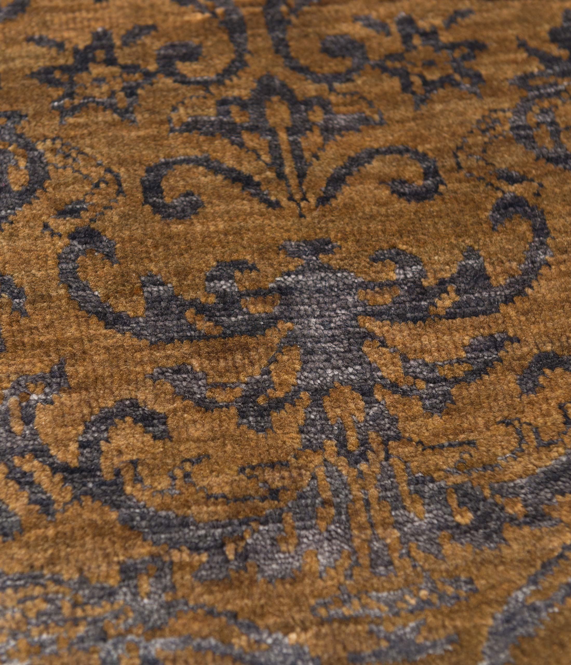 Dieser handgeknüpfte Teppich aus der Kollektion Eterno erstrahlt in einer harmonischen Farbpalette, die primär von einem warmen Braunton dominiert wird. Diese Hauptfarbe wird durch elegante, graue Akzente ergänzt, die sich in einem kunstvollen, barocken Muster über die gesamte Fläche ziehen. Ein Hauch von Beige rundet das Design ab und verleiht dem Teppich eine subtile Eleganz. Die Musterung ist reich an Details und verleiht dem Teppich eine zeitlose Ästhetik, die sowohl in moderne als ...mehr Beschreibung