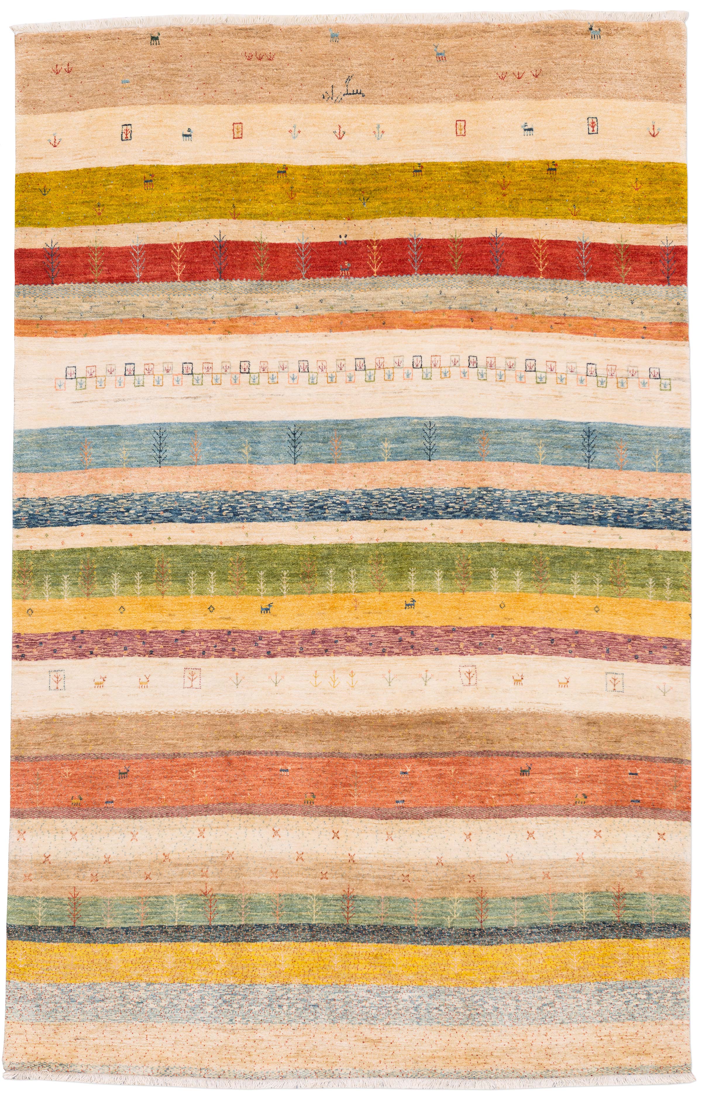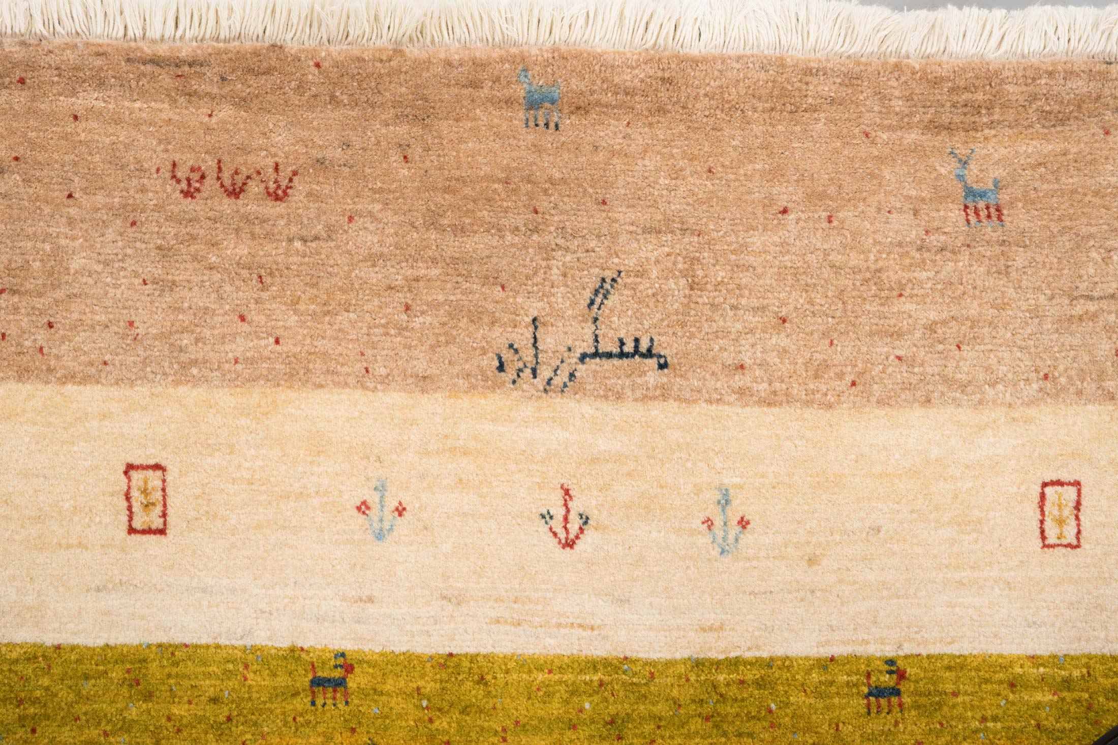 Dieser Teppich ist eine limitierte hauseigene Weiterentwicklung der Kashkulibaft/Gabbeh/Amalehbaft/Rizbaft Teppiche, welche im Hochland des nordwestpersischen Kurdestan in der Stadt Bidjar geknüpft werden. Mit seiner extremen Höhenlage von 1920 Metern wird Bidjar auch als Dach Persiens bezeichnet. Bei diesen unikalen Stücken wird der mystische Musterschatz alter Nomadenvölker so arrangiert, dass eine moderne Bildwirkung entsteht. Die Knüpfer haben bei der Gestaltung der Musterung größte künstlerische Freiheit und arbeiten nicht nach einer Vorlage, so ist jedes Stück absolut einzigartig und authentisch.