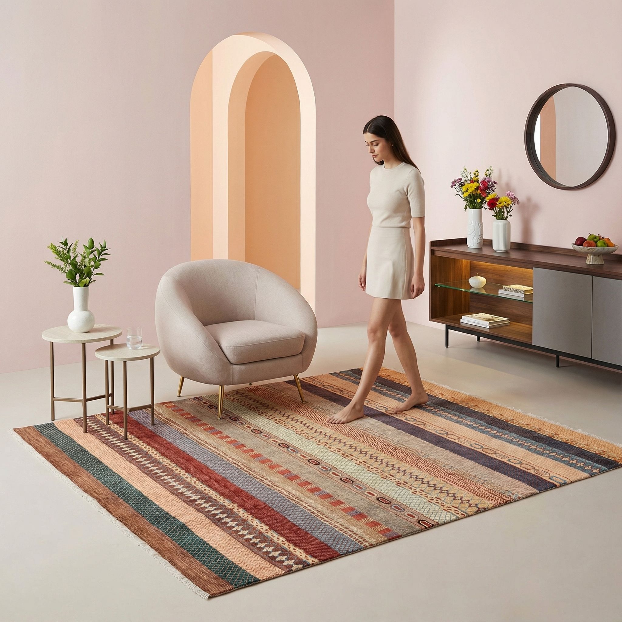Unsere handgeknüpften Teppiche sind reine Handarbeit aus erlesenen Naturmaterialien. Echte Knoten sowie Schuss- und Kettfäden verleihen ihnen außergewöhnliche Langlebigkeit, Tiefe und bleibenden Wert - jeder Knoten ein Ausdruck echter Handwerkskunst. Handgefertigt und komplett ohne Kleber - für eine authentische, langlebige Qualität.