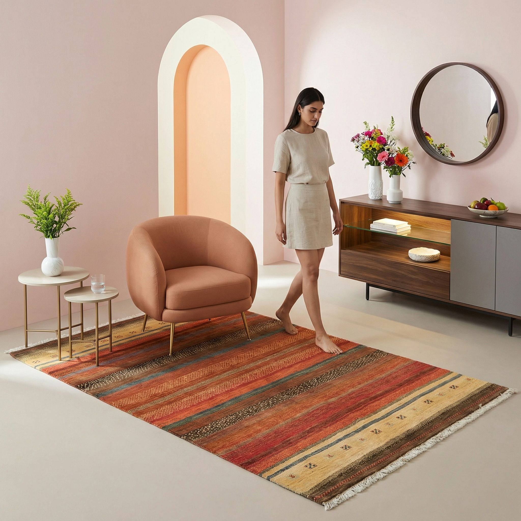 Unsere handgeknüpften Teppiche sind reine Handarbeit aus erlesenen Naturmaterialien. Echte Knoten sowie Schuss- und Kettfäden verleihen ihnen außergewöhnliche Langlebigkeit, Tiefe und bleibenden Wert - jeder Knoten ein Ausdruck echter Handwerkskunst. Handgefertigt und komplett ohne Kleber - für eine authentische, langlebige Qualität.